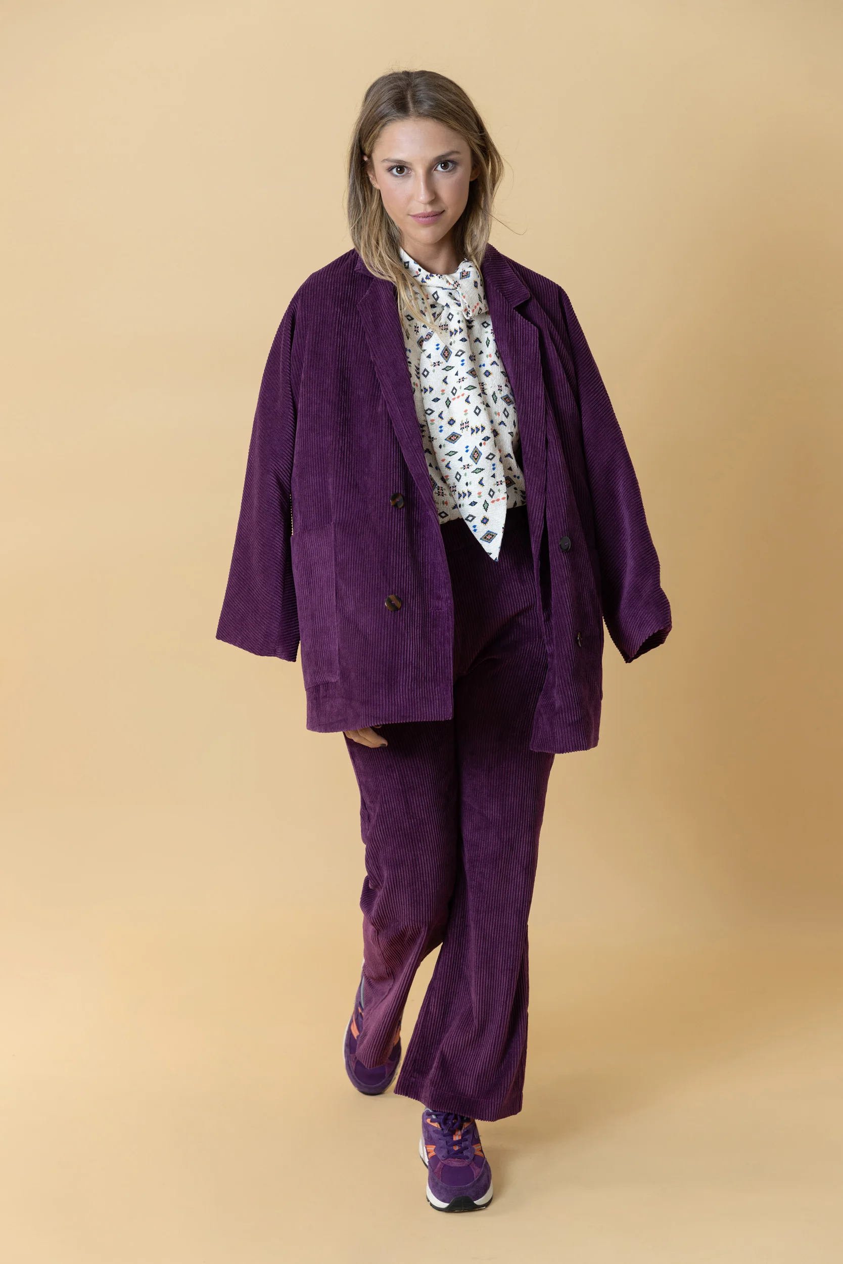 Americana oversaize realizada en un tejido de mezcla con spandix en color mosto.