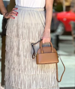 Bandolera de piel, serraje. Estampado en animal print en tono taupe. Cierre cremallera en tono dorado.