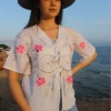 Measurements- 44″(112cm) bust – 25″(64cm) sleeve length – 27″(69cm) top length.