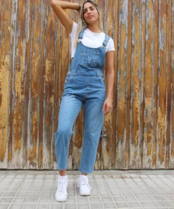 Measurements – 8.5″(22cm) top of bib – 11″(28cm) bottom of bib – 30″(82cm) waist – 38″(97cm) hips – 29″(74cm) inner leg – 11″(28cm) rise.