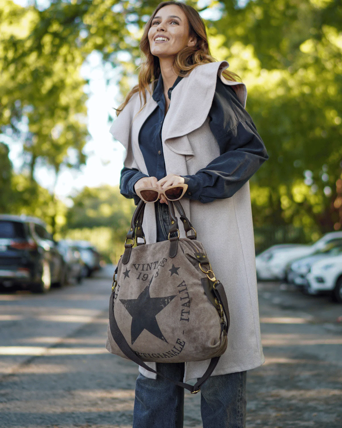 - Bolso de piel de serraje con cremallera fabricado en Florencia por artesanos peleteros.