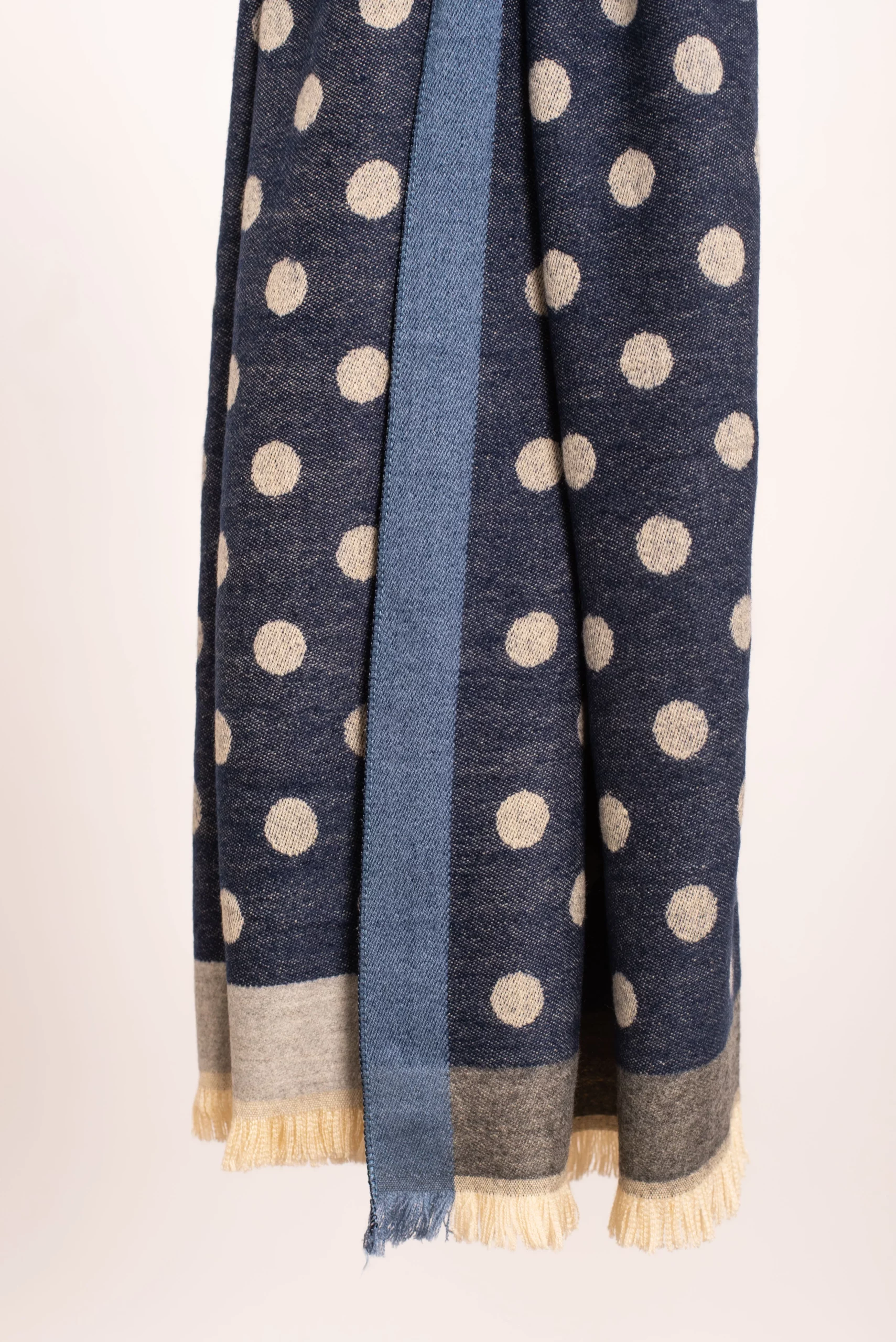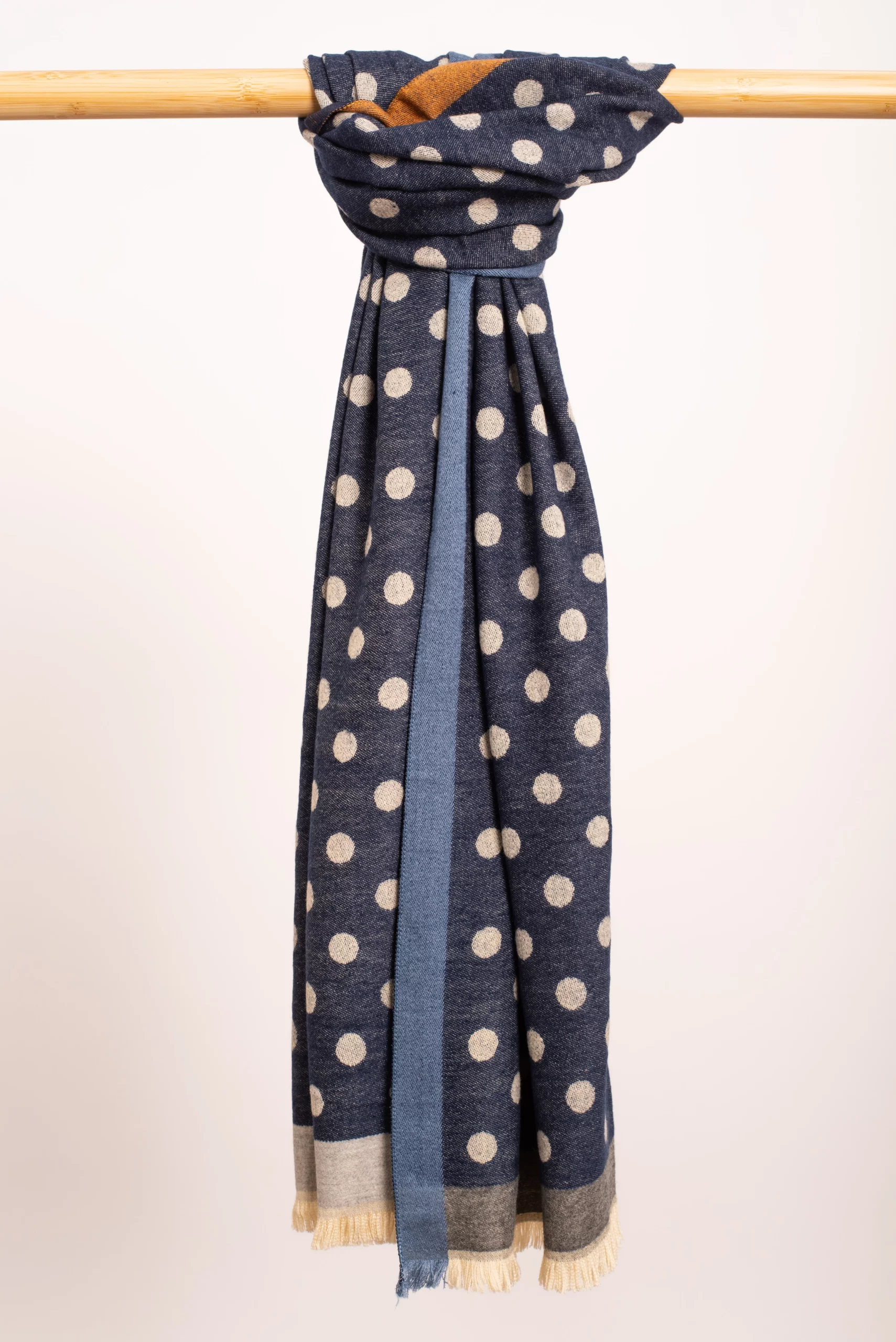Bufanda clasica con remate en flecos. Estampado lunares. Suave y calentita. Ligera. Ideal para combinar.