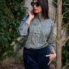 -Botonadura en la espalda, con botón joya en color rojo cristal.