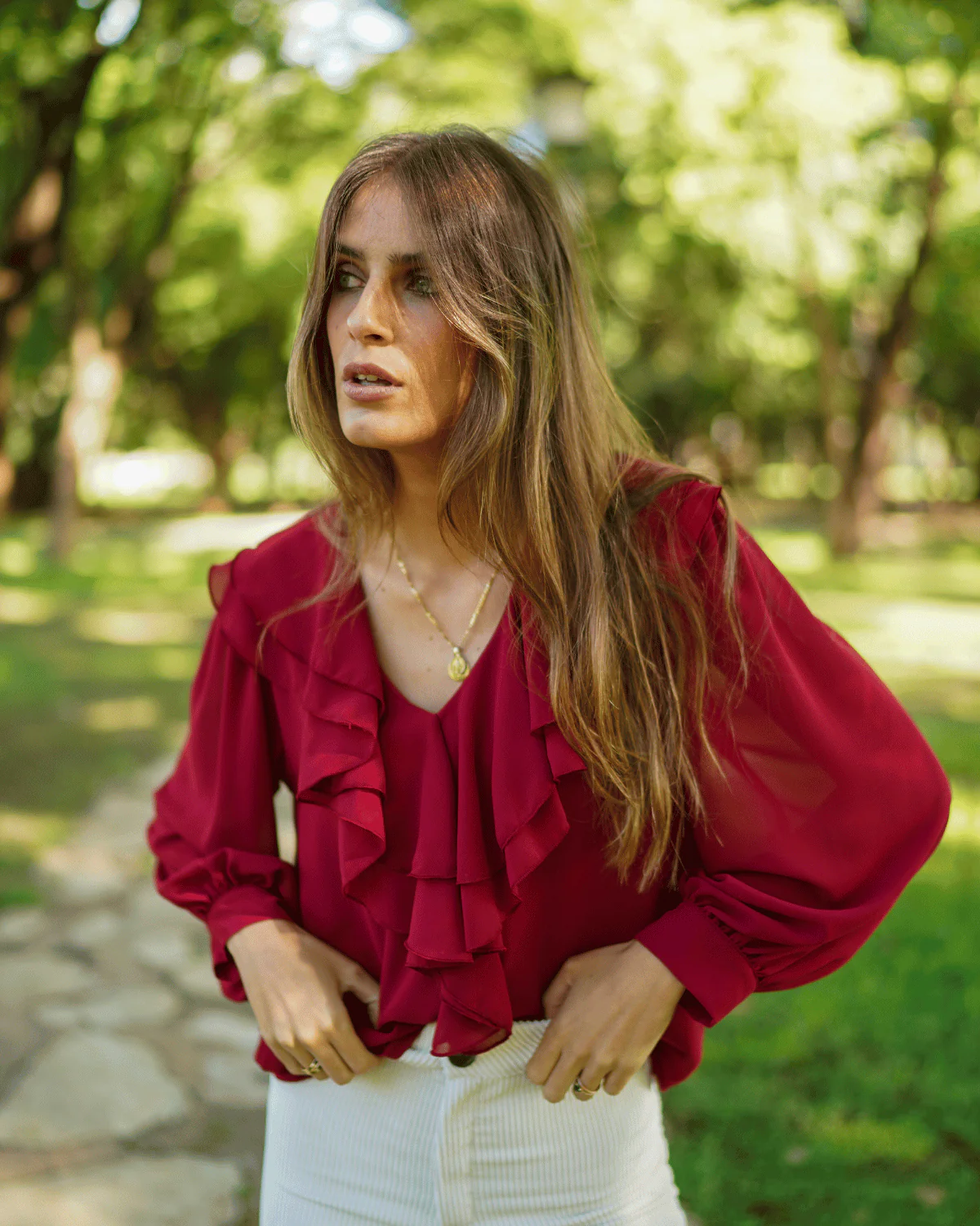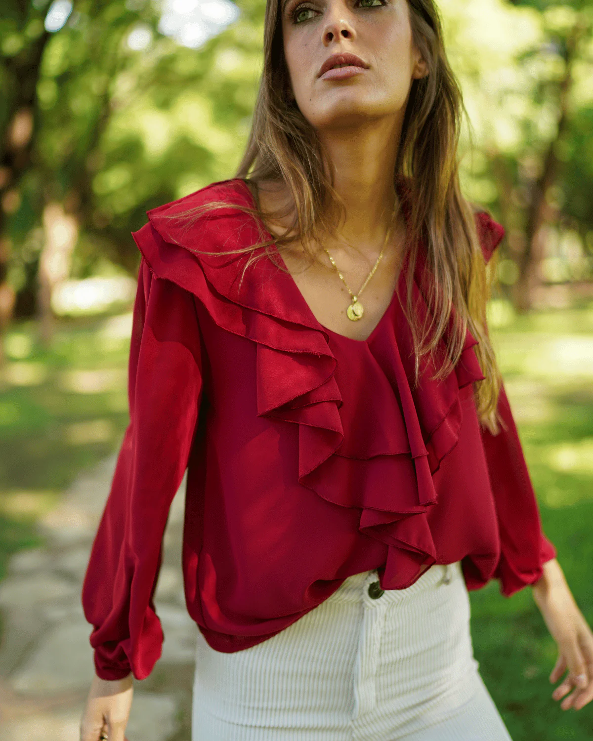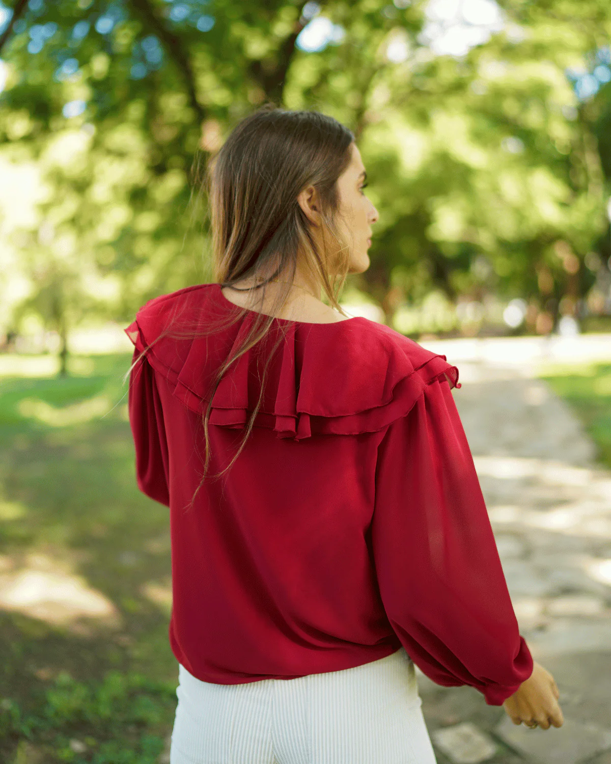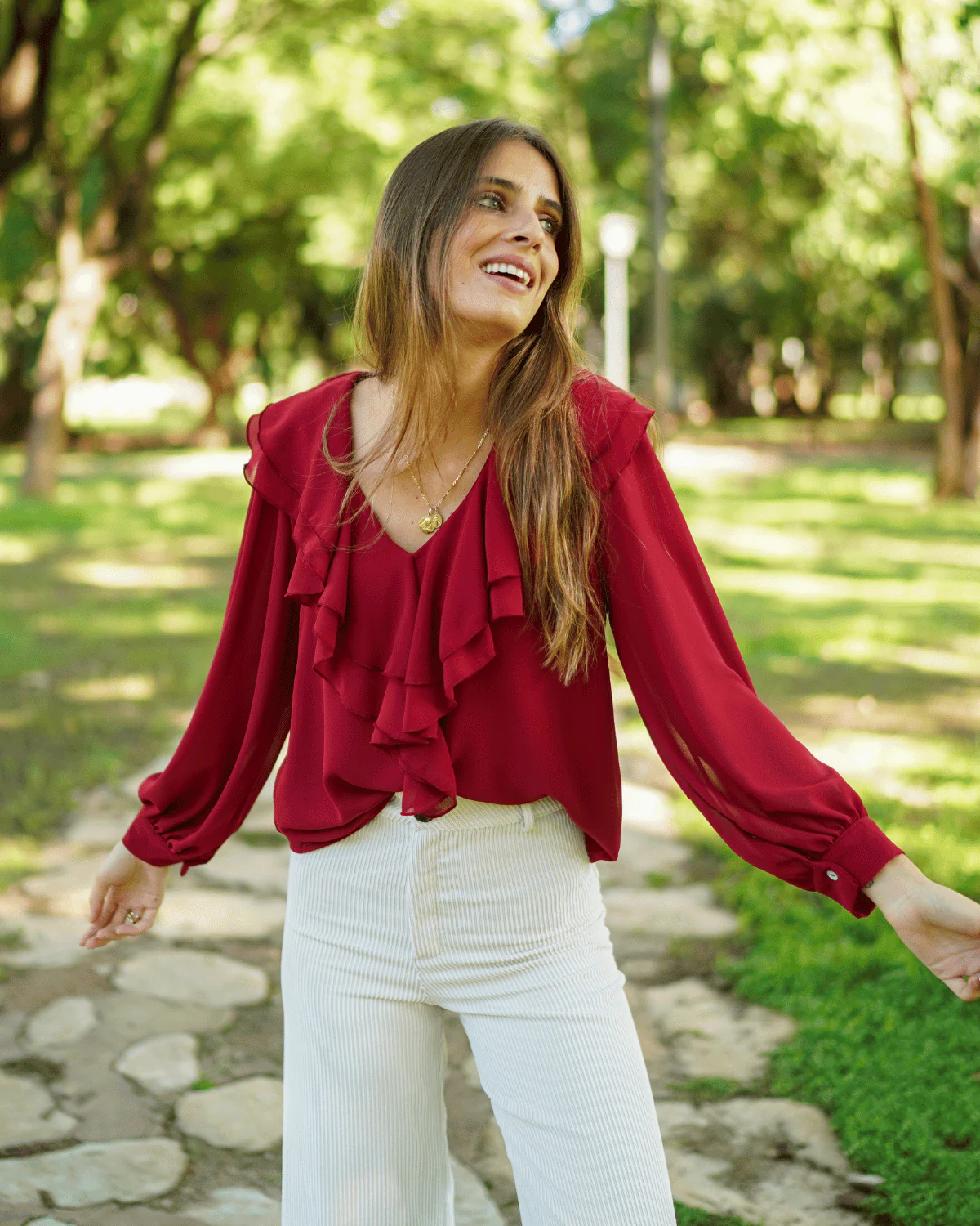 - Camisa de doble gasa de manga larga con cierre de botón en puño.