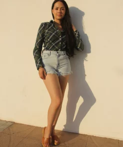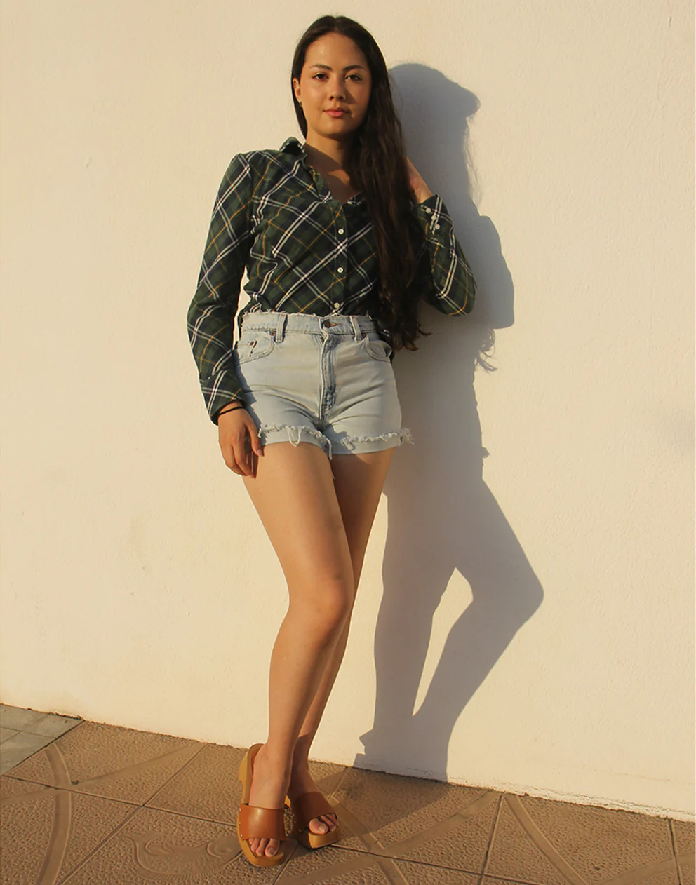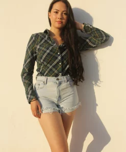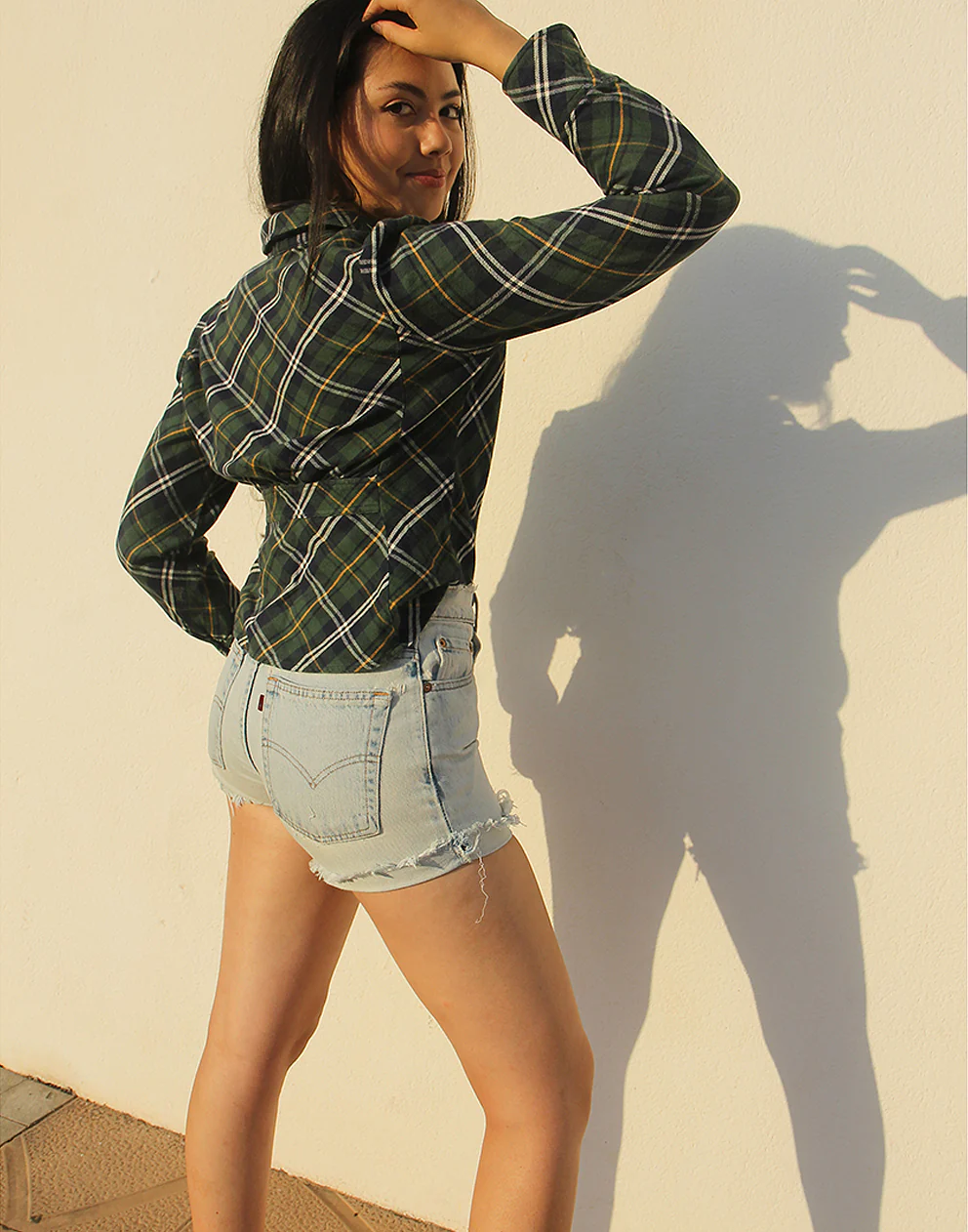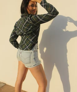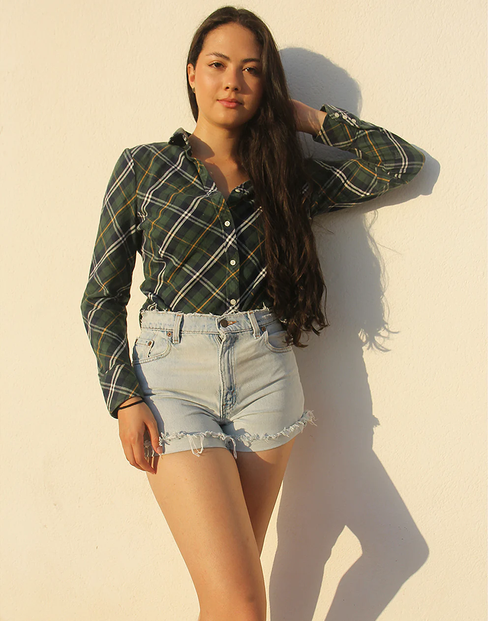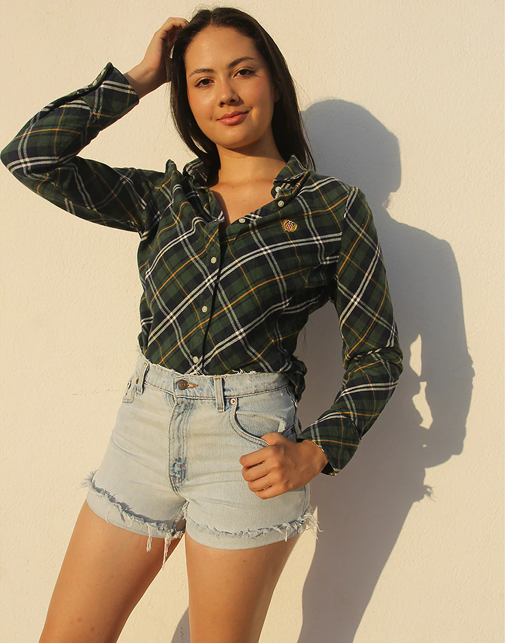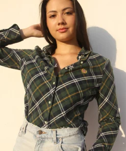 Vintage check shirt in a dark green, navy, yellow and white check.
