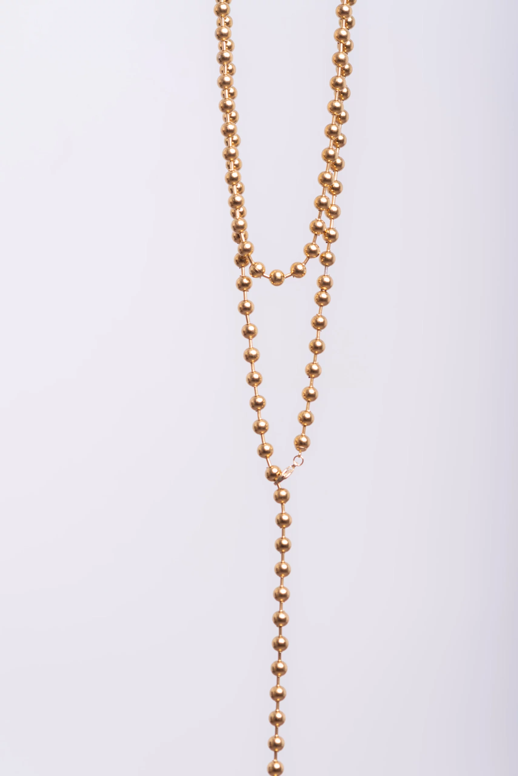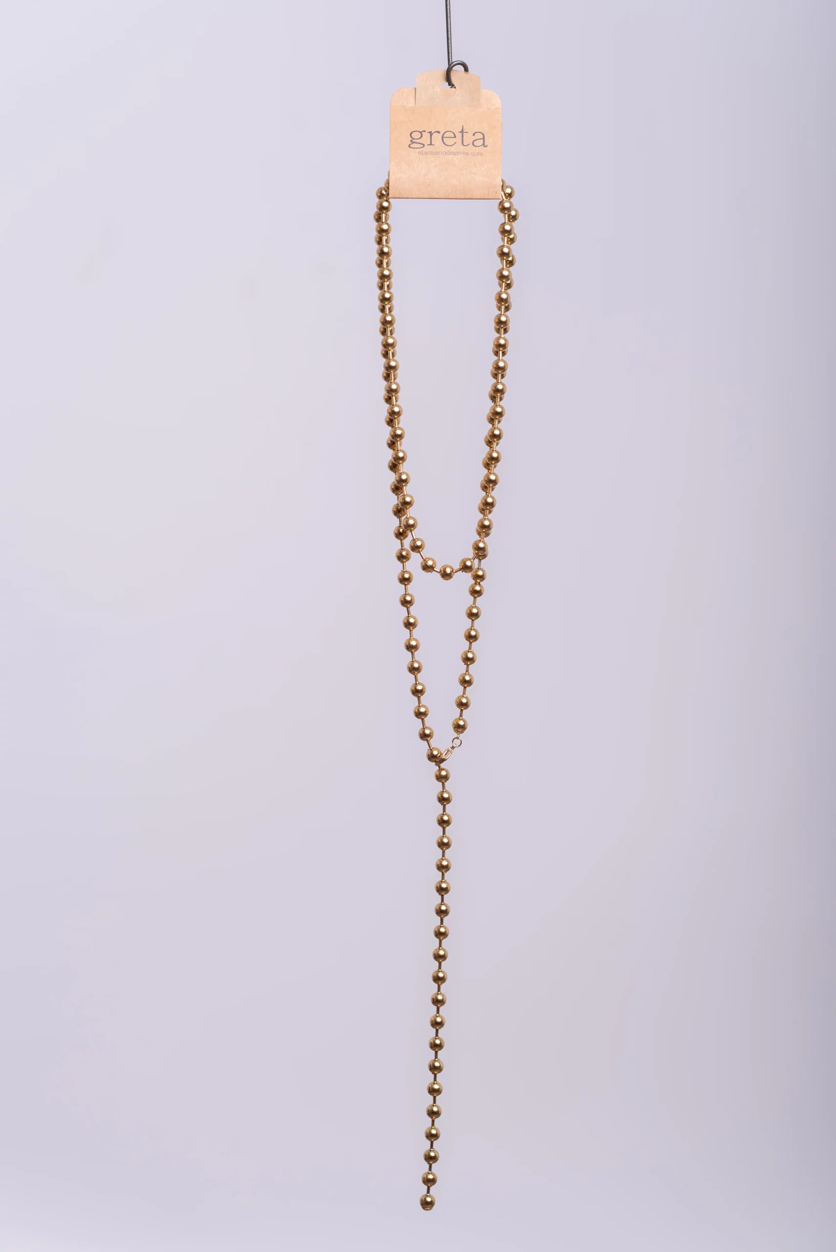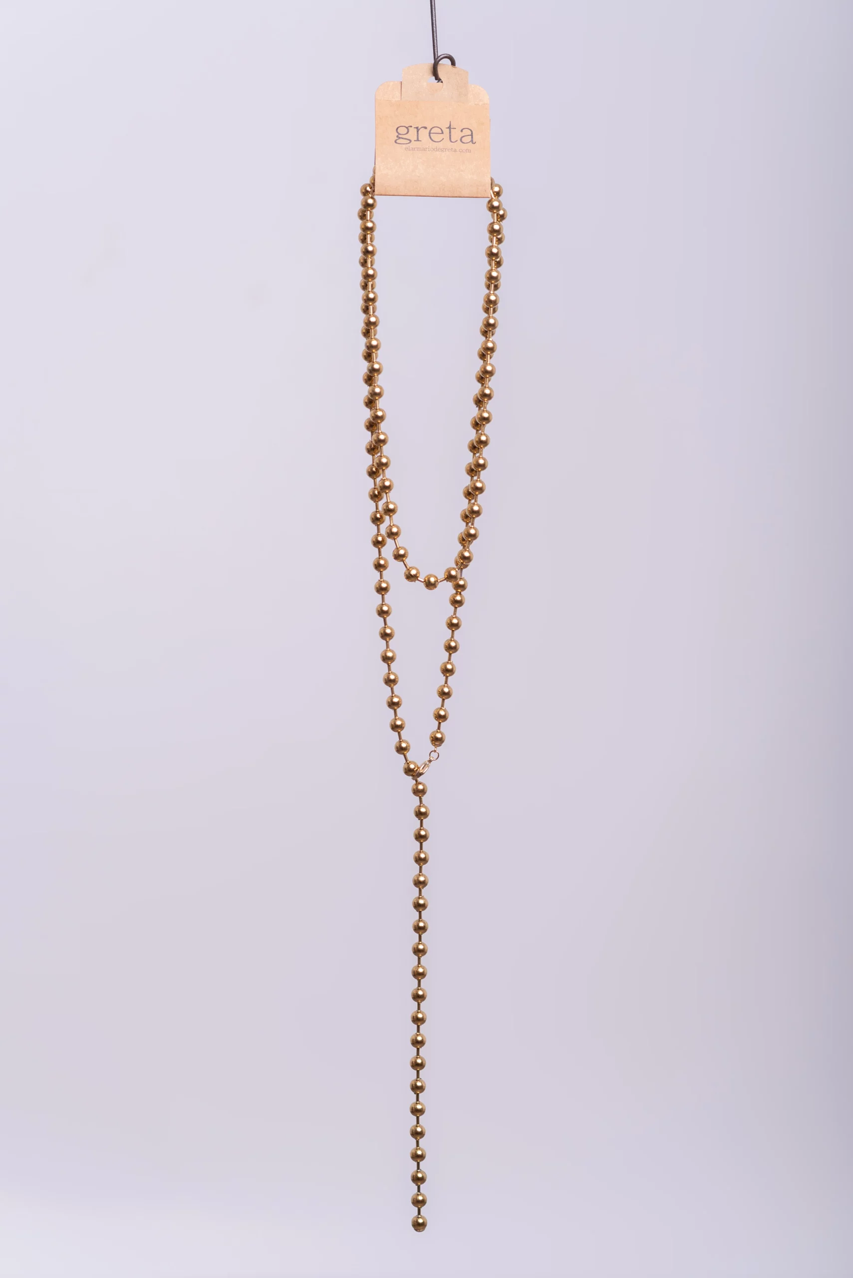 Collar de bisuteria. Tira de cuentas larga, de esferas en tono dorado, para que te la ajustes en una o mas vueltas.