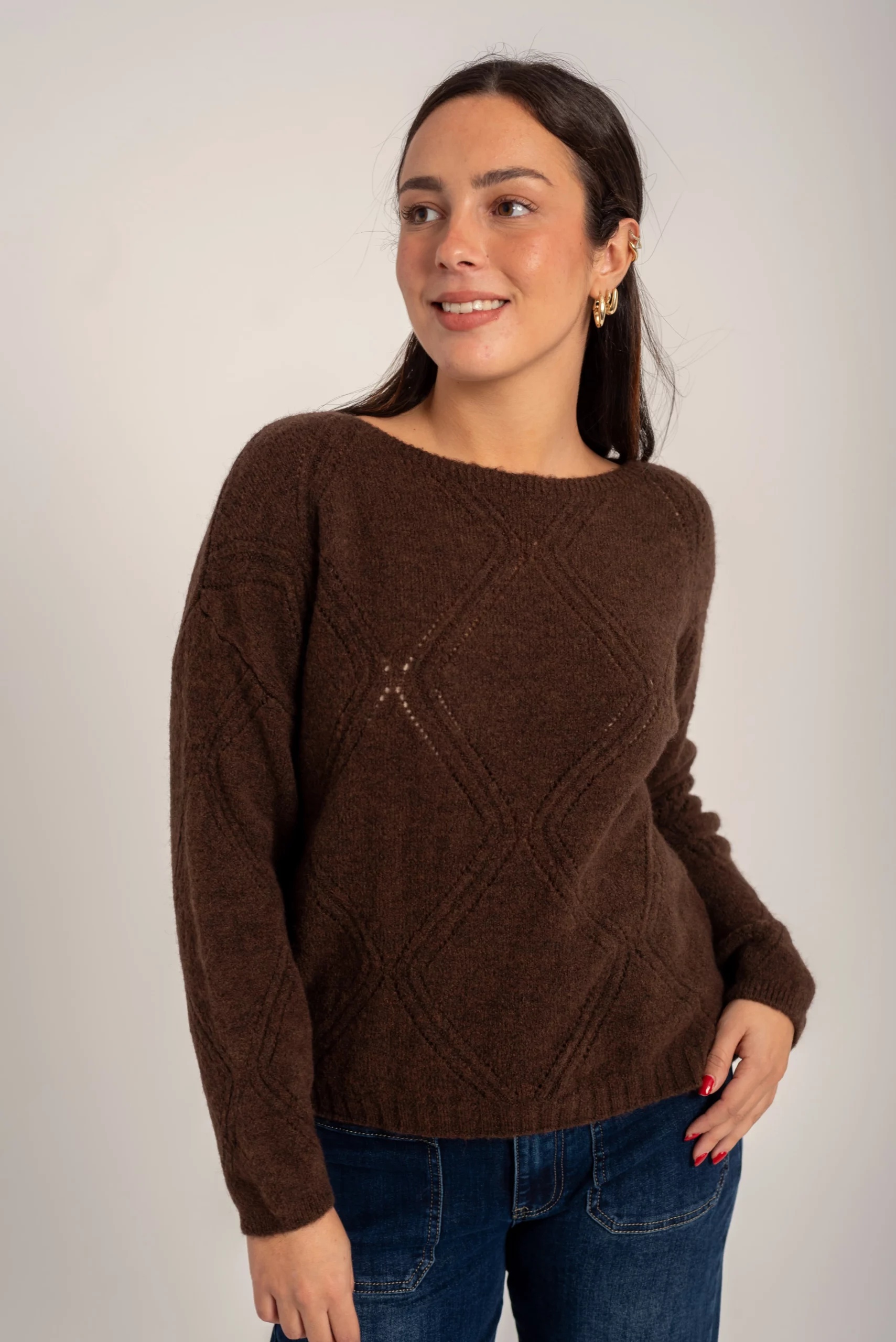 Jersey escote redondeado, manga larga. Dibujo tejido en rombos. Un básico de temporada que no puede faltar en tu armario!