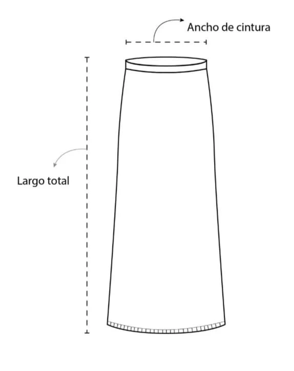 - S: Largo: 80 cm ; Ancho(cintura): 32 cm.