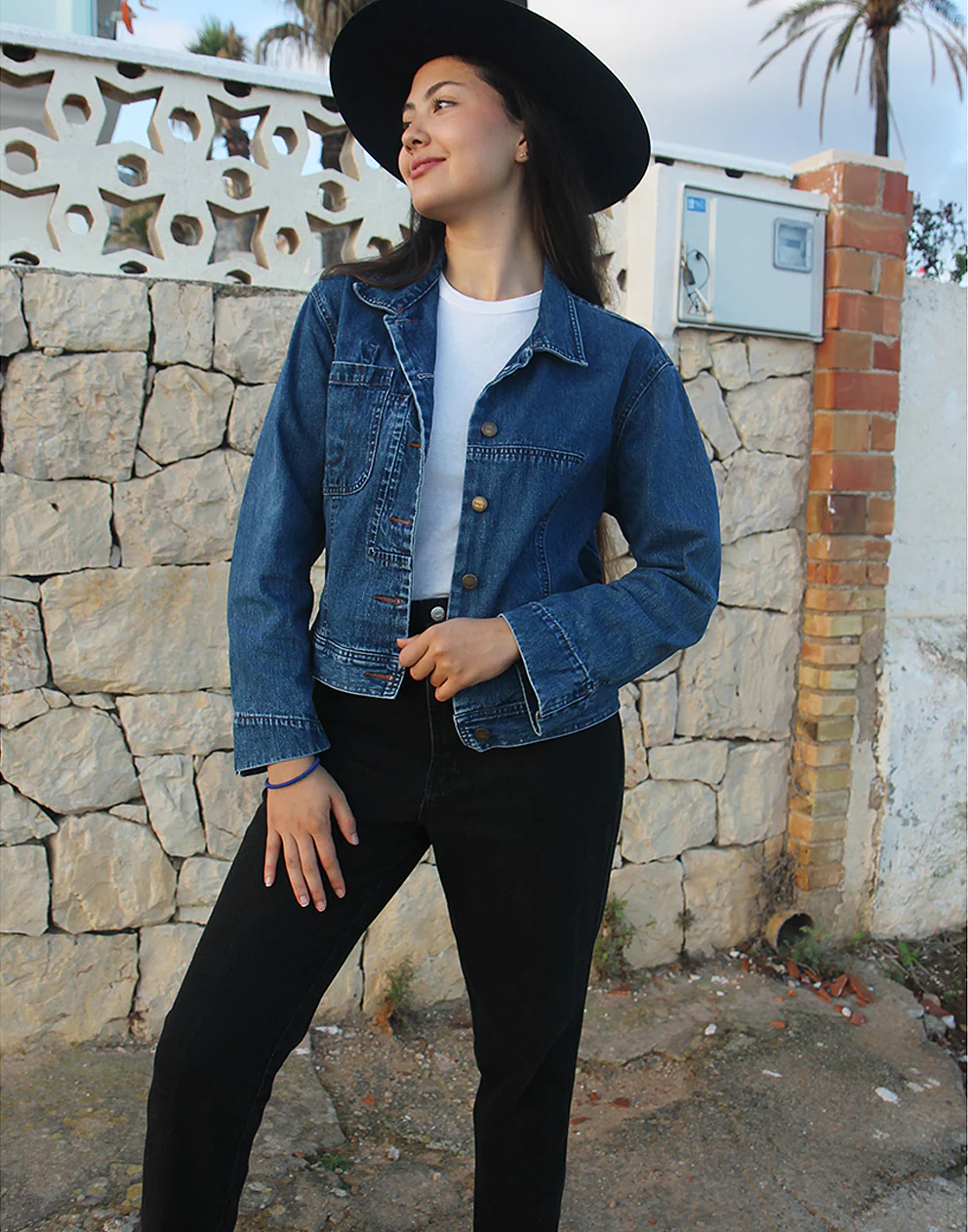 Jean jacket in blue.