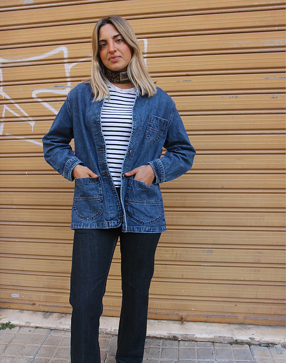 Measurements – 46″(117cm) bust – 23″(58cm) sleeve length – 29″(74cm) jacket length.