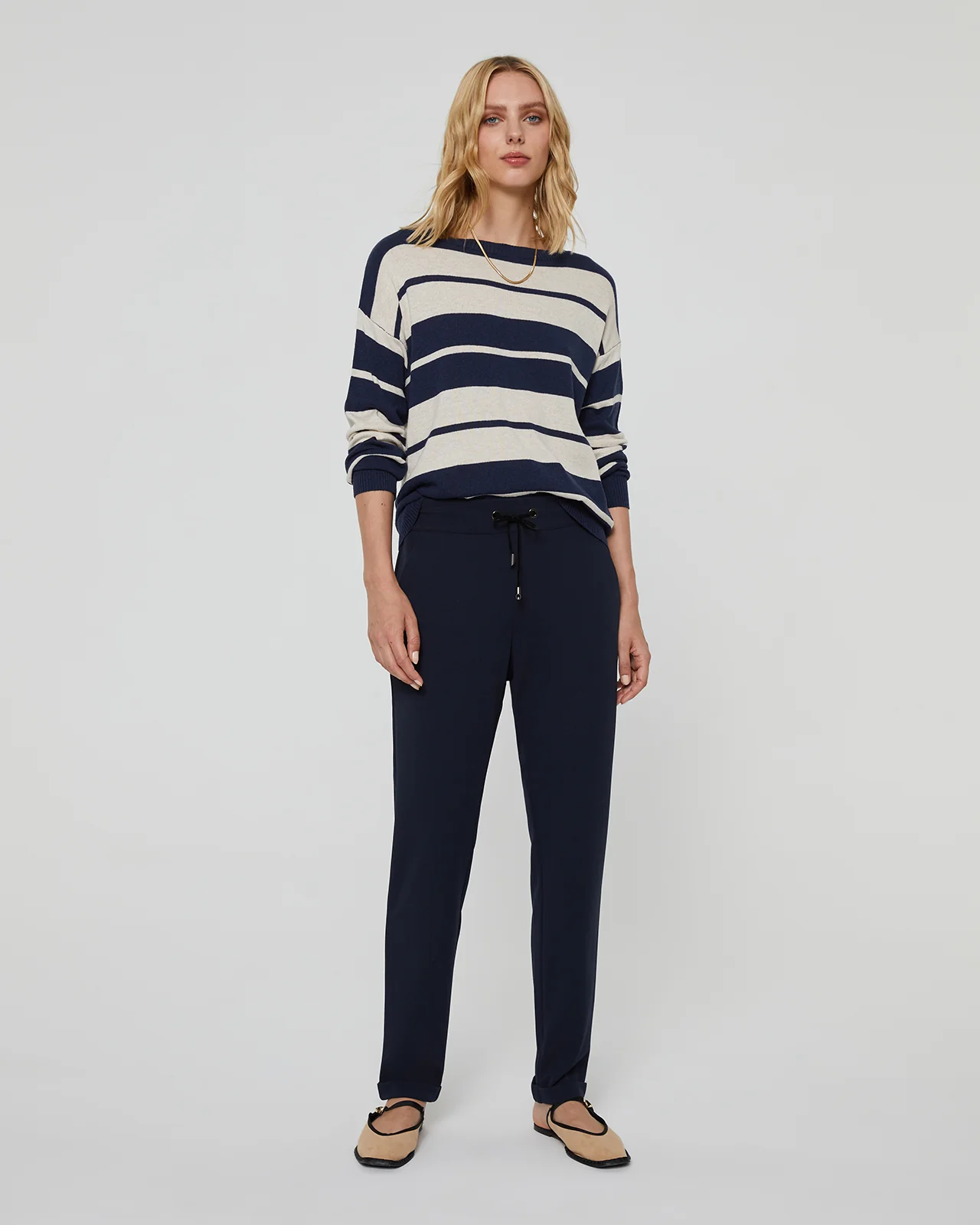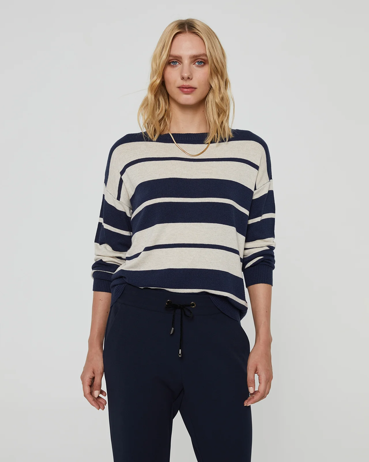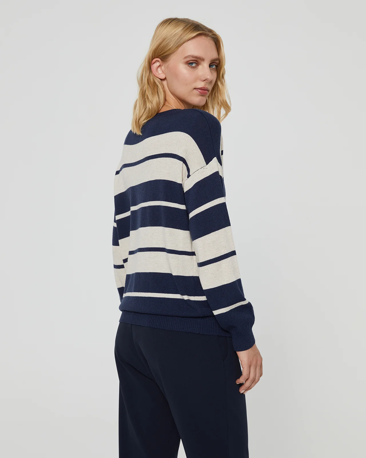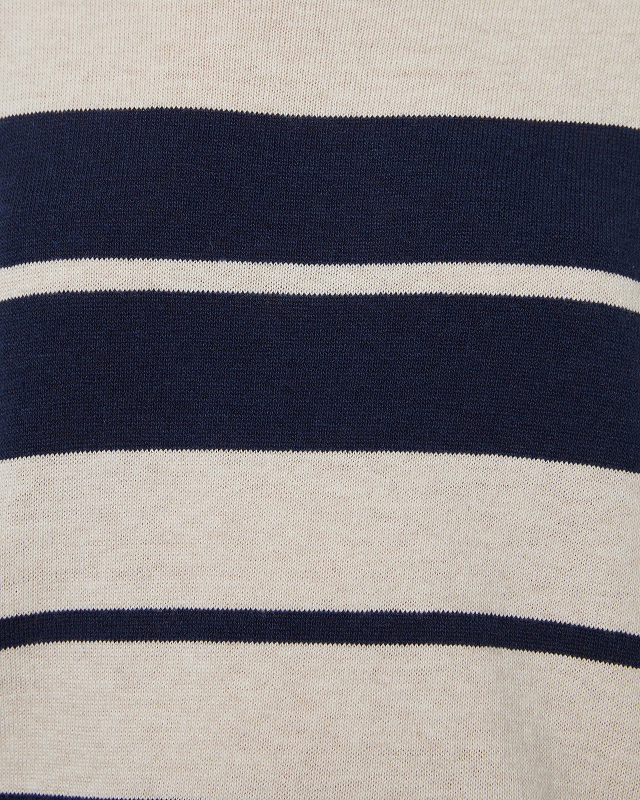 Jersey de rayas bicolor manga larga y escote redondo. Un jersey básico con un estilo marinero que nunca pasa de moda.