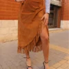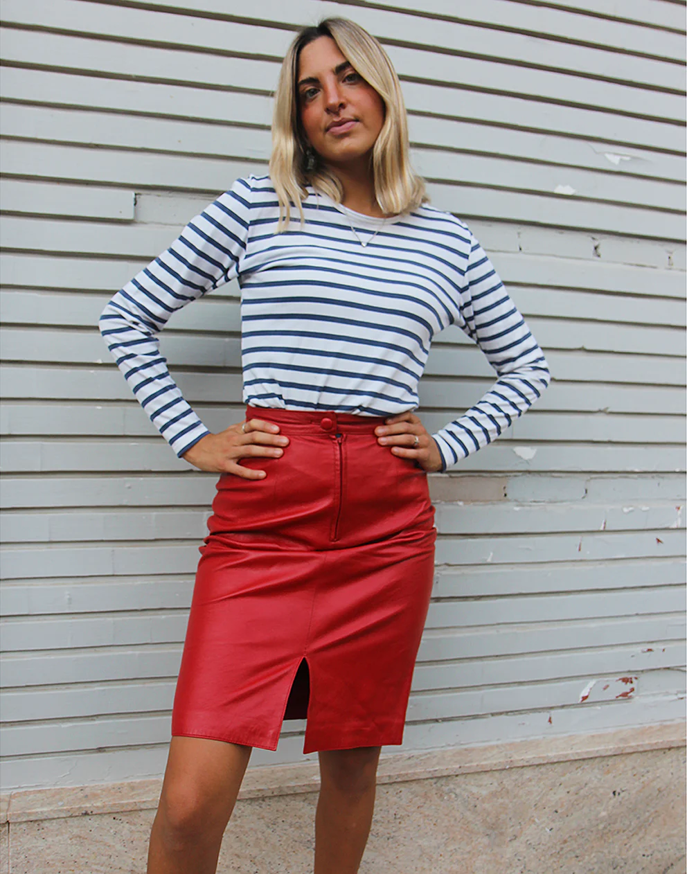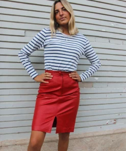 Red leather skirt.