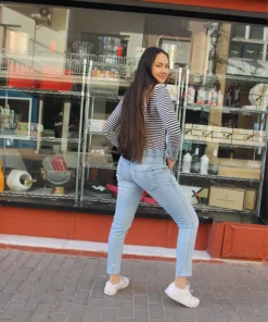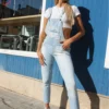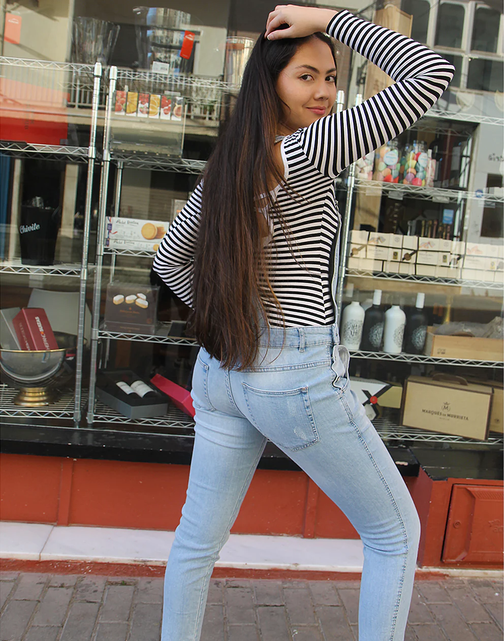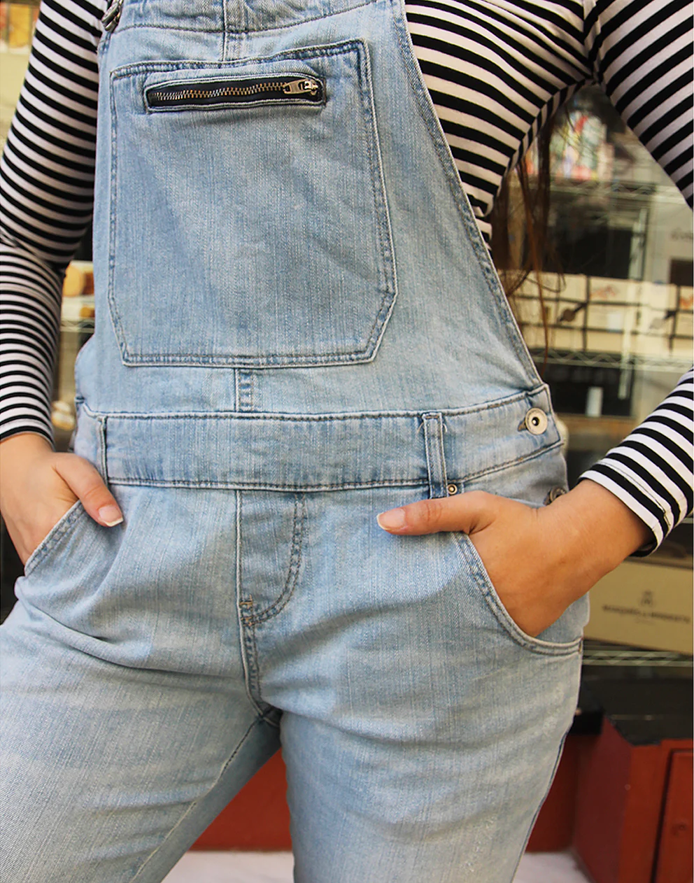 Measurements – 8″(21cm) top of bib – 15″(38cm) bottom of bib – 34″(87cm) waist – 38″(97cm) hips – 30.5″(78cm) inner leg – 9″(23cm) rise.