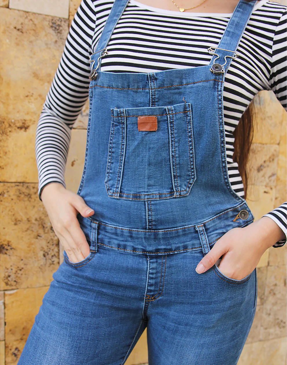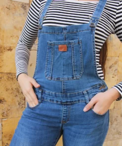 Measurements – 8.5″(22cm) top of bib – 11″(28cm) bottom of bib – 26″(66cm) waist – 30″(76cm) hips – 30″(77cm) inner leg – 7.5″(19cm) rise.