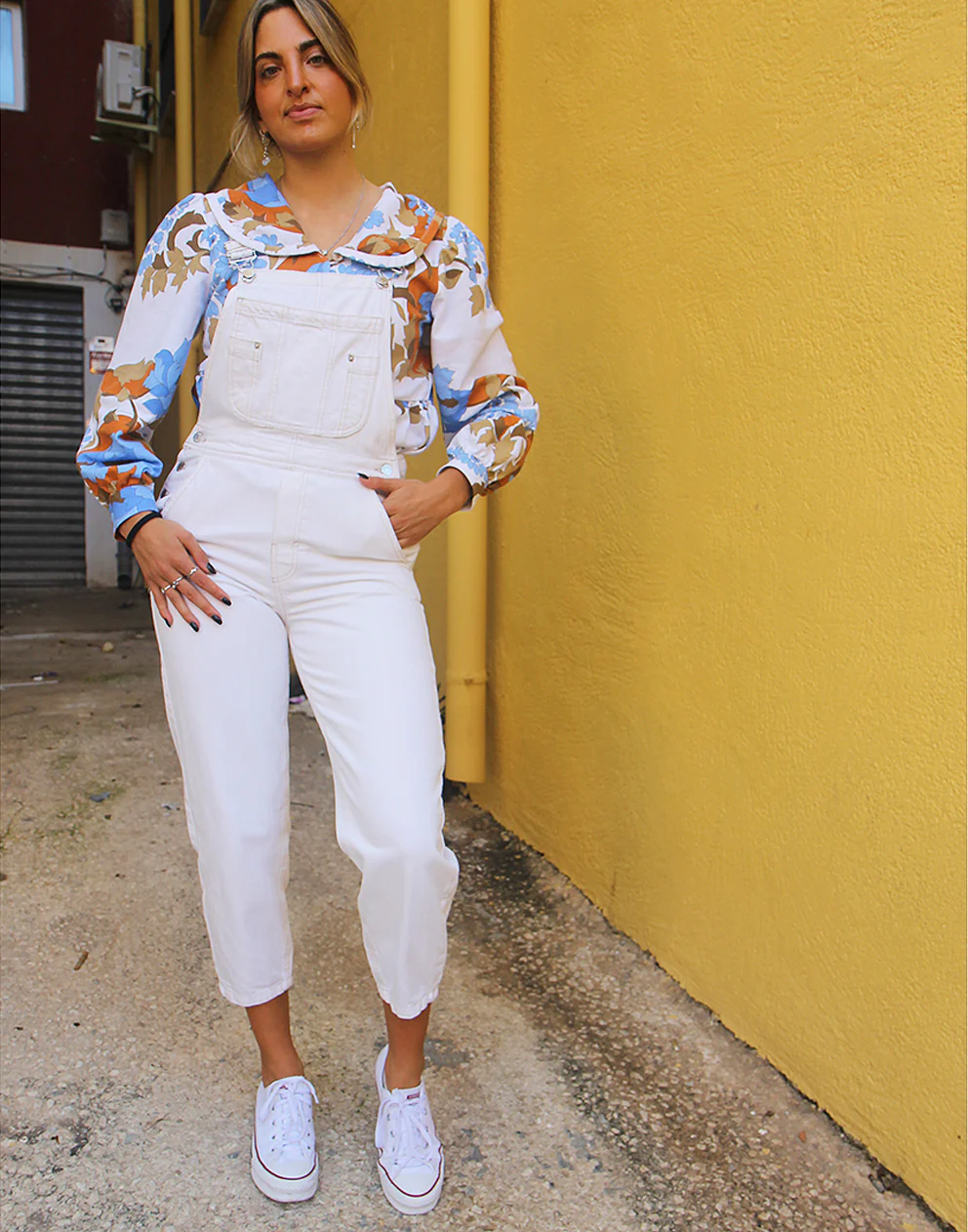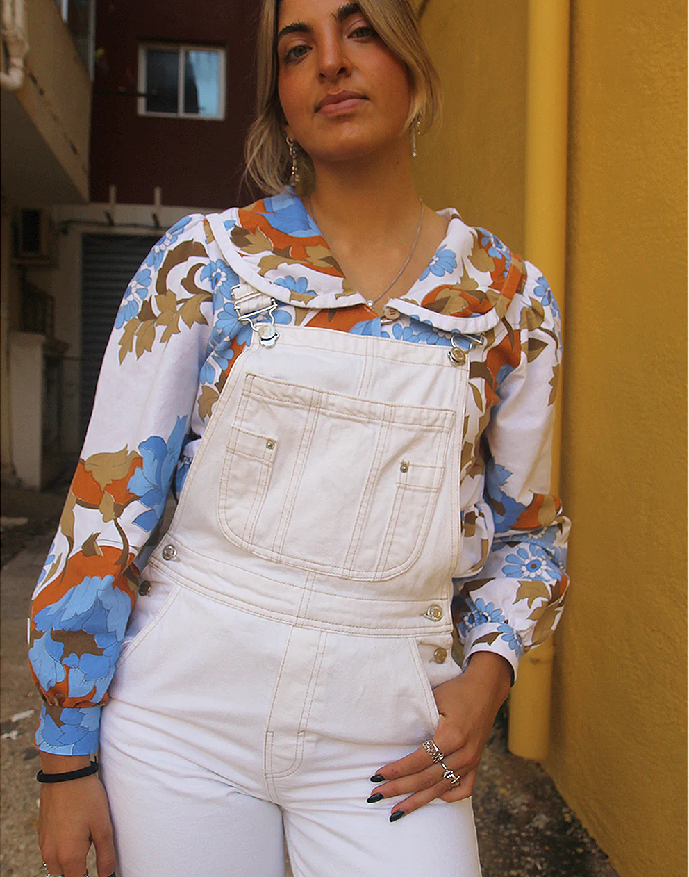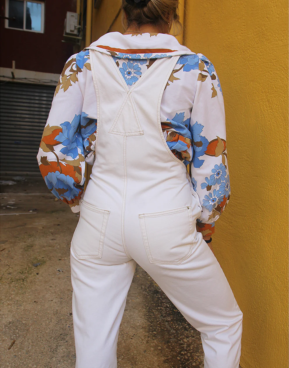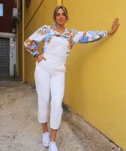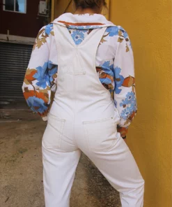 Vintage Pull and Bear long dungaree overalls in cream.
