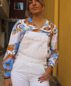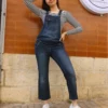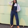 Measurements – 8″(21cm) top of bib – 13″(34cm) bottom of bib – 32″(82cm) waist – 36″(92cm) hips – 25″(64cm) inner leg – 11.5″(29cm) rise.