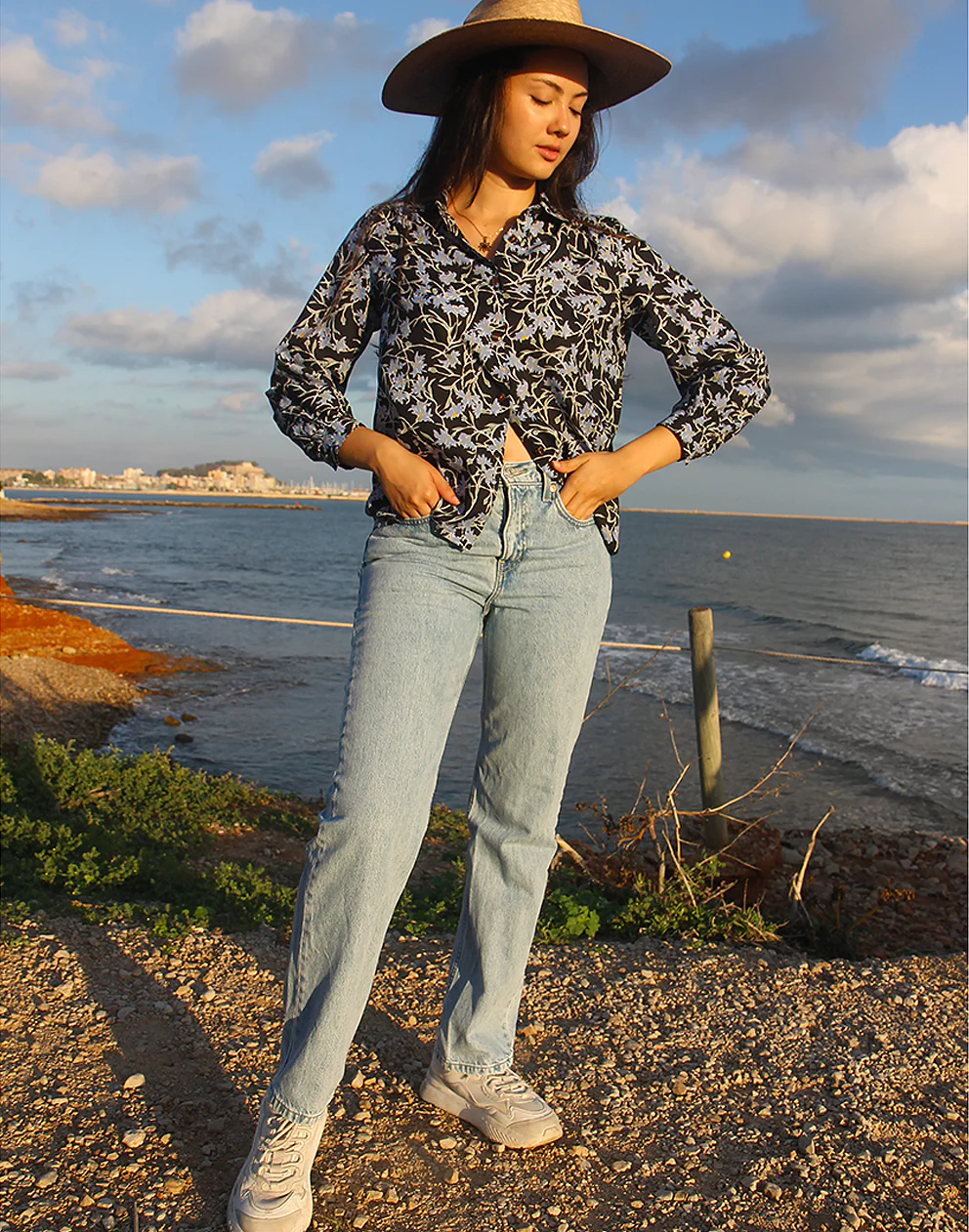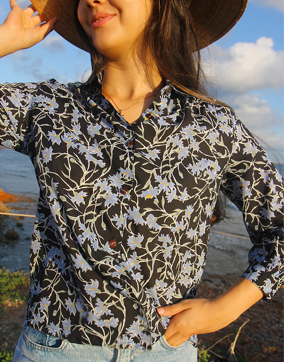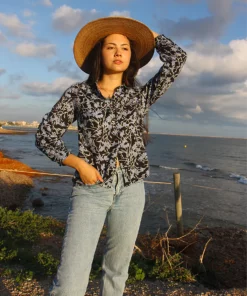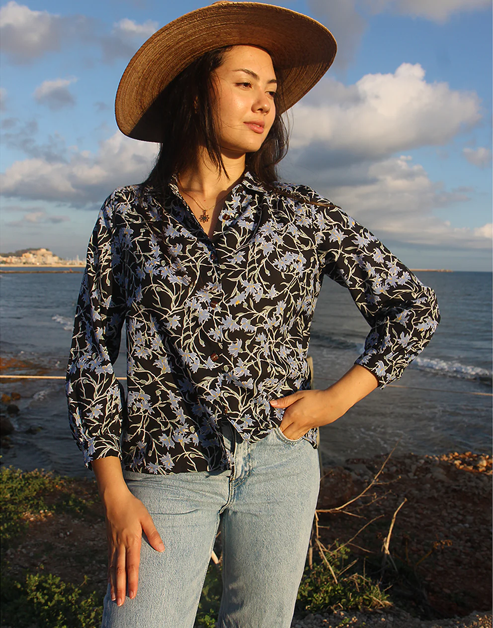 Measurements – 40″/ 102cm bust, 22″/ 56cm sleeve length, 24″/ 61cm shirt length.