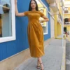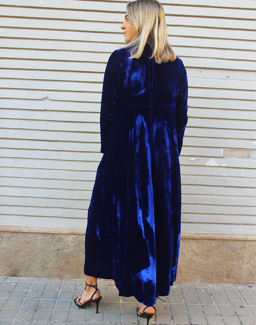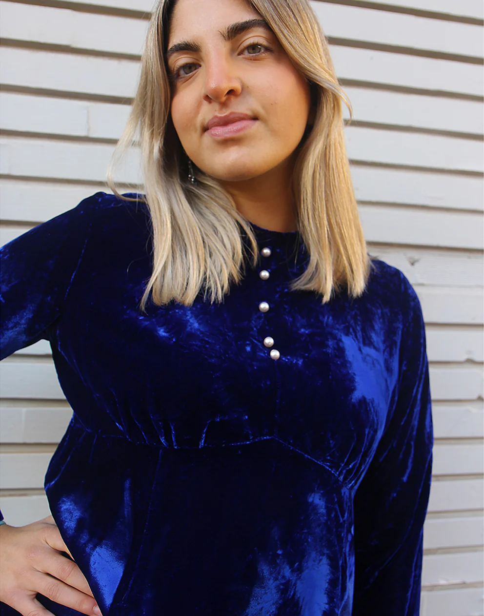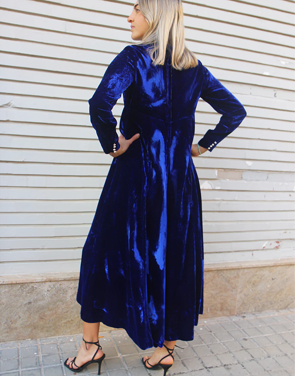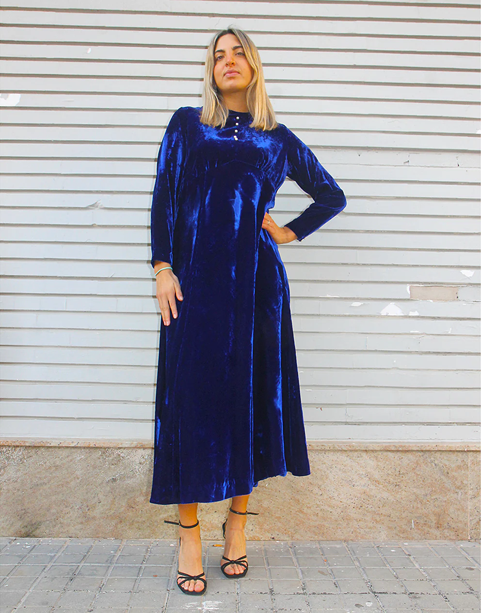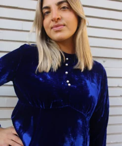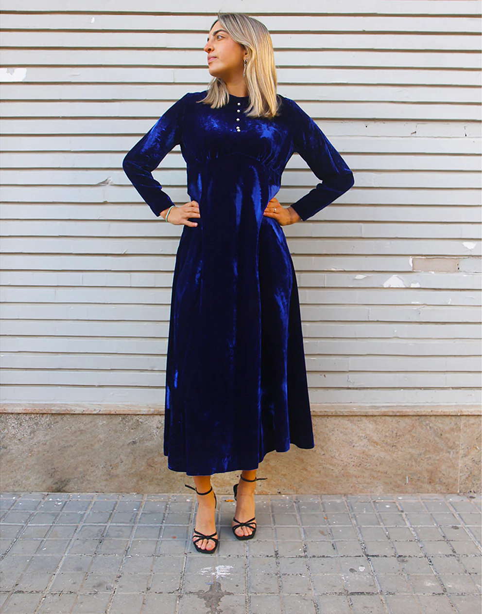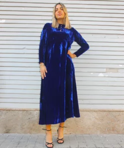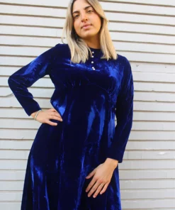 Measurements: 40″/ 102cm bust – 34″ / 86cm waist – 50″ / 127cm hips – 22″ / 56cm sleeve length – 54″ / 137cm dress length.
