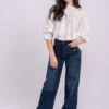 Blusa nido de abeja elastico. Manga ligeramente abullonada con goma en el puño y volante. Tejido plumeti ligero. Ideal.