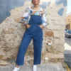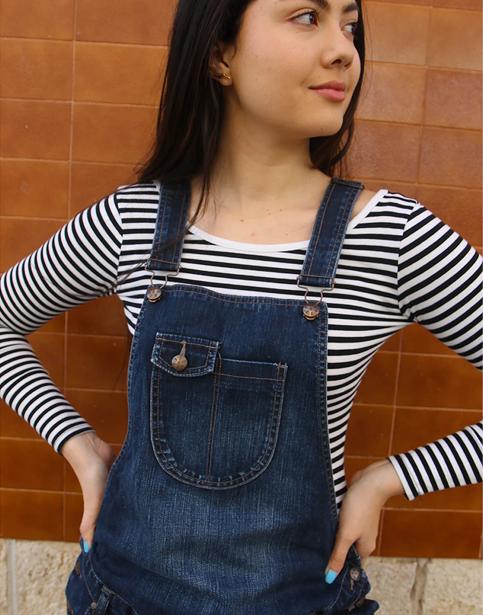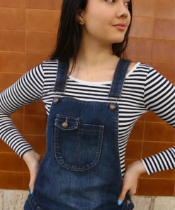 Measurements – 8″(24cm) top of bib – 16″(41cm) bottom of bib – 38″(97cm) adjustable waist – 38″(97cm) hips – 25″(64cm) inner leg – 6″(15cm) rise.