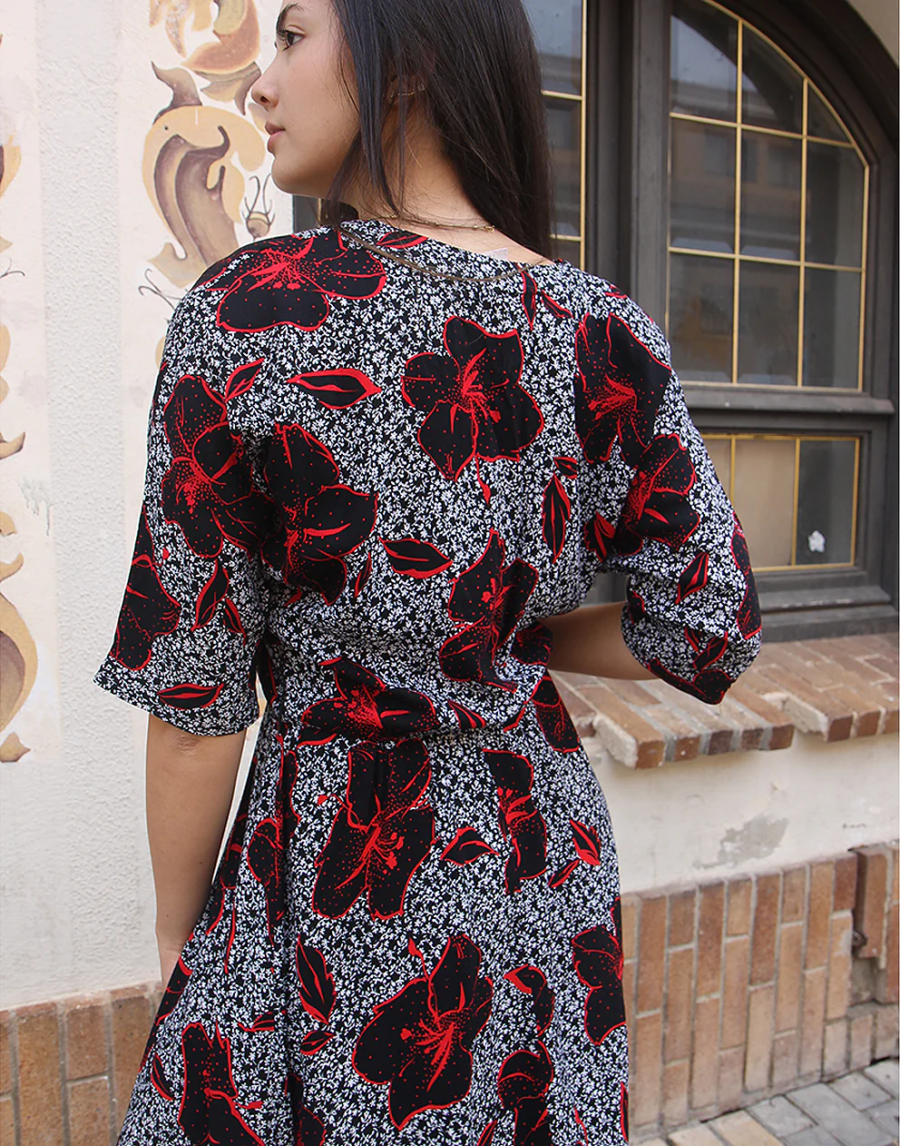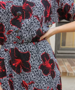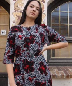 Measurements: 46″/ 117cm bust – 26-32″ / 66-81cm waist – 50″ / 127cm hips – 16″ / 41cm sleeve length – 47″ / 120cm dress length.
