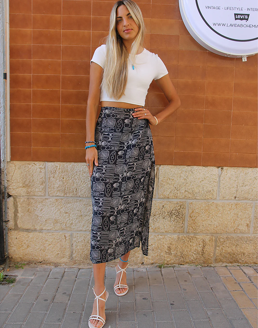 Measurements: 32″ / 81cm waist – 40″ / 102cm hips – 35″ / 89cm skirt length.