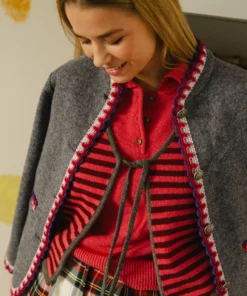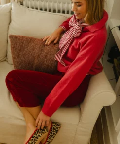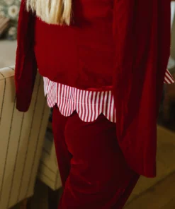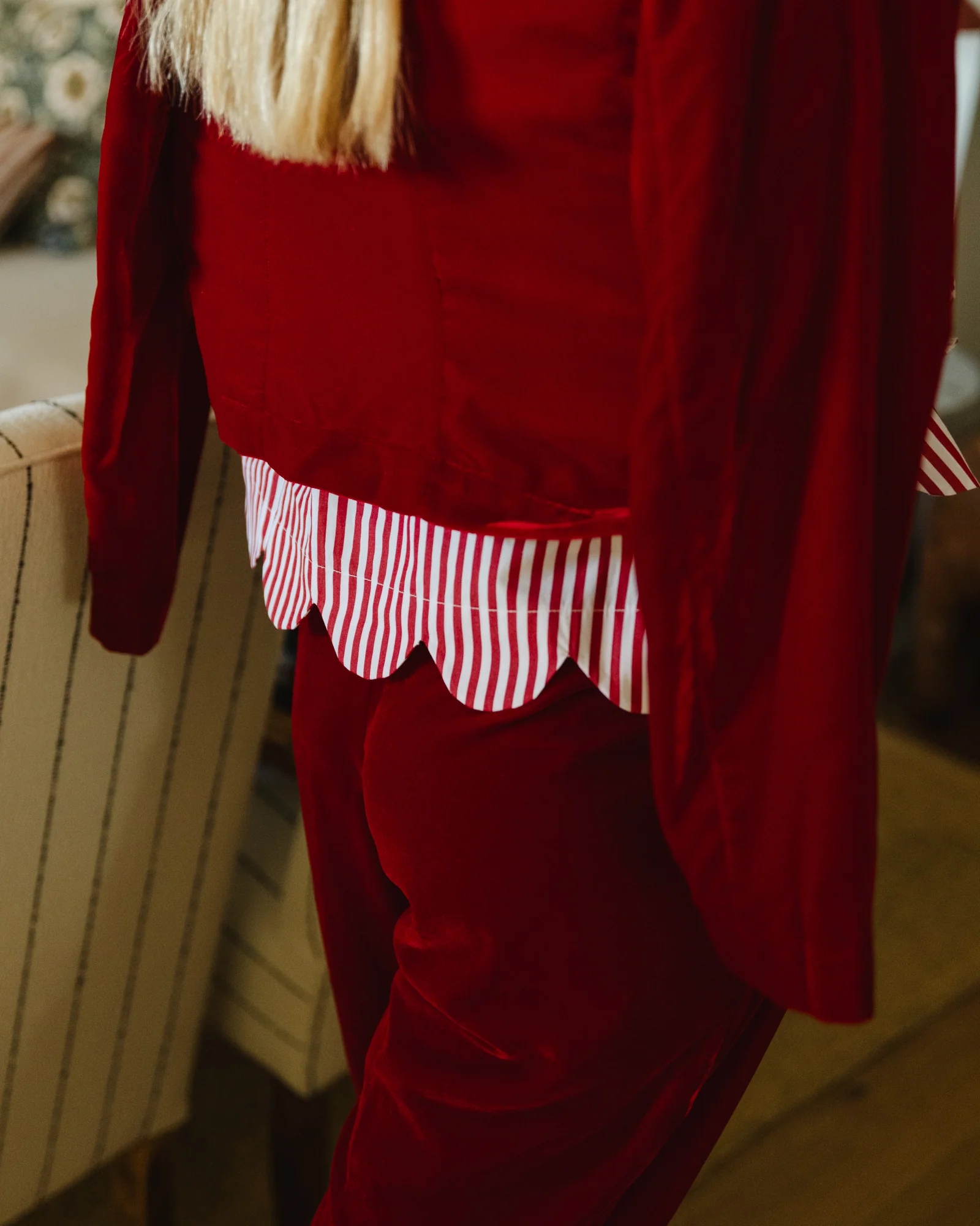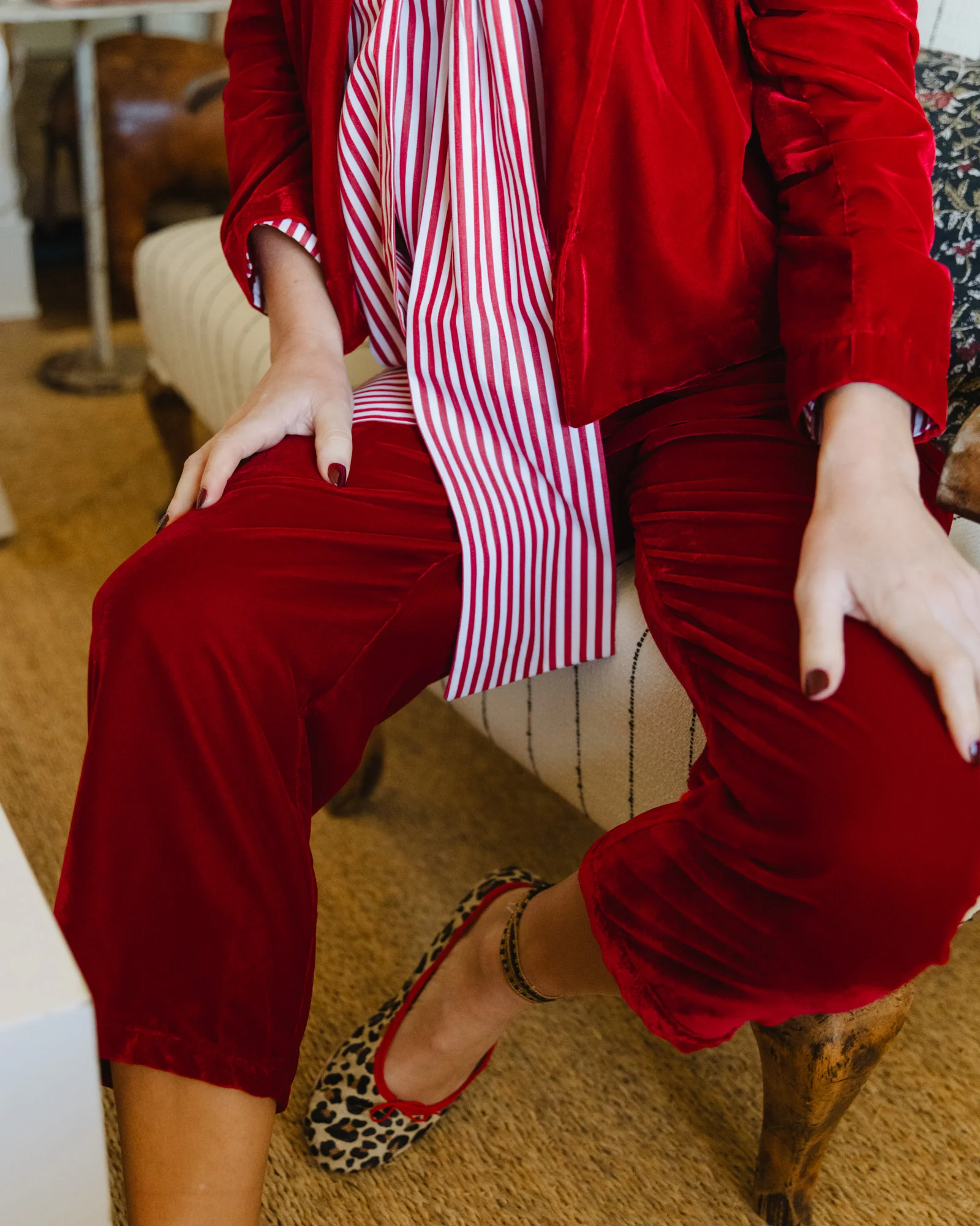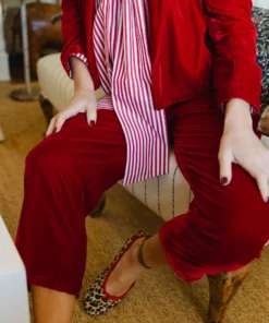 Nos divierte muchísimo en velvet cereza, como básico para combinar con blusas escocesas y de flores, o en total look con blazer de mismo color para un efecto wow.
