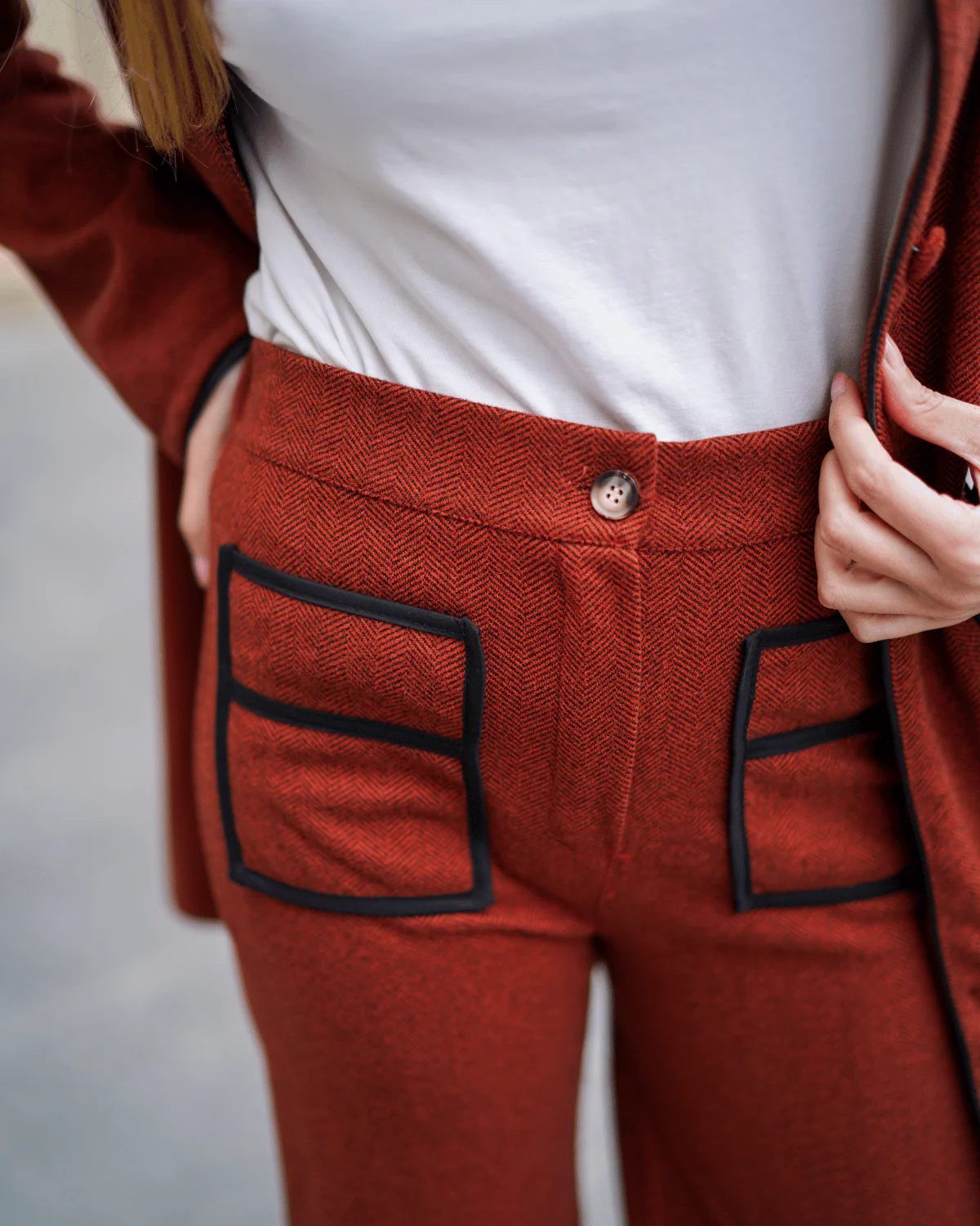 - Cierre con cremallera y botón.