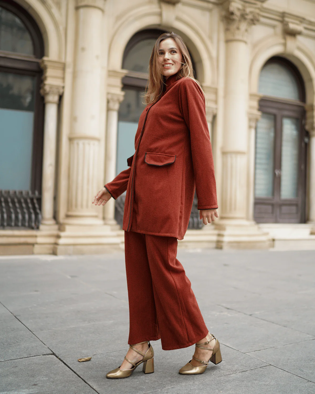 - La modelo mide 165 cm y lleva la talla S.