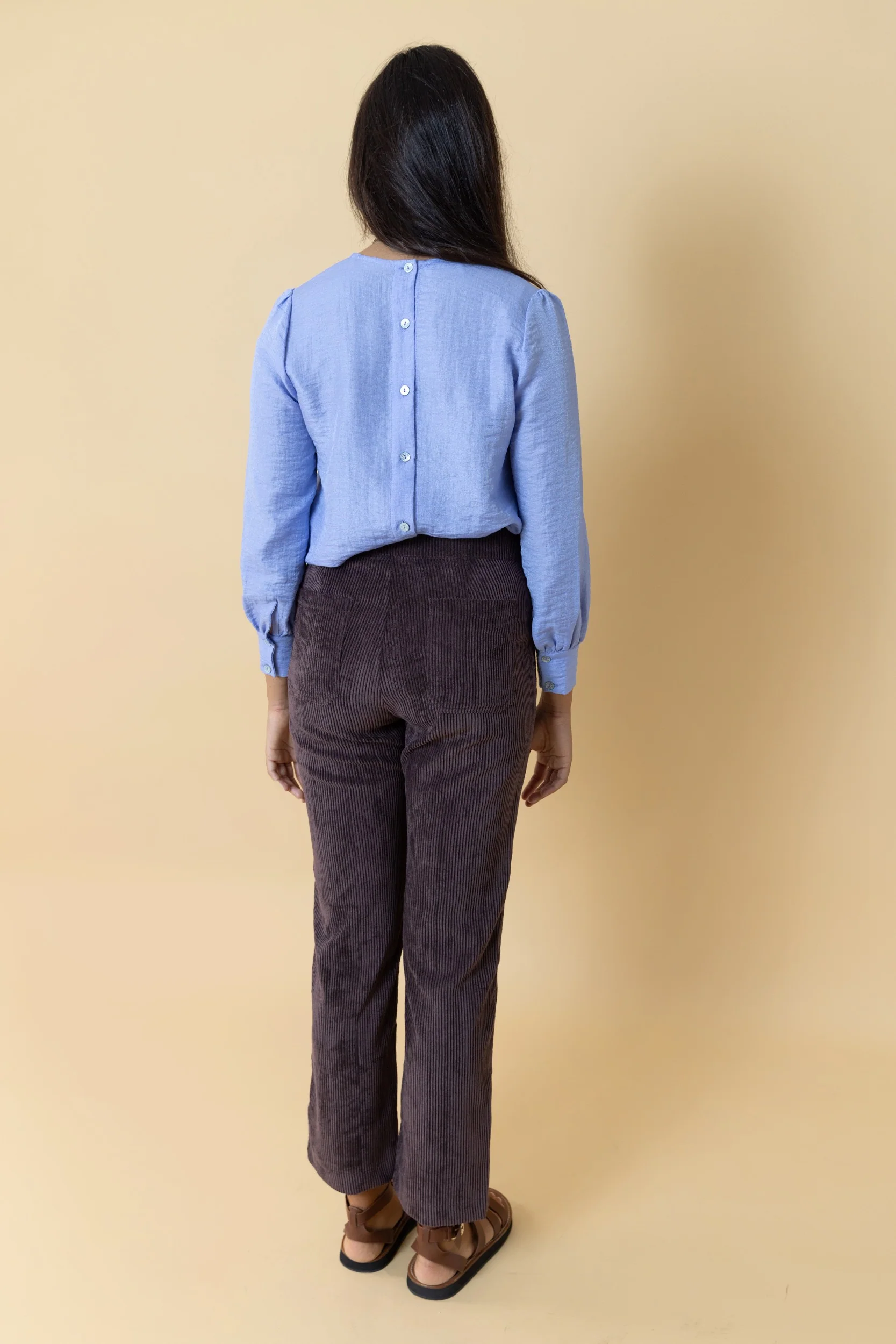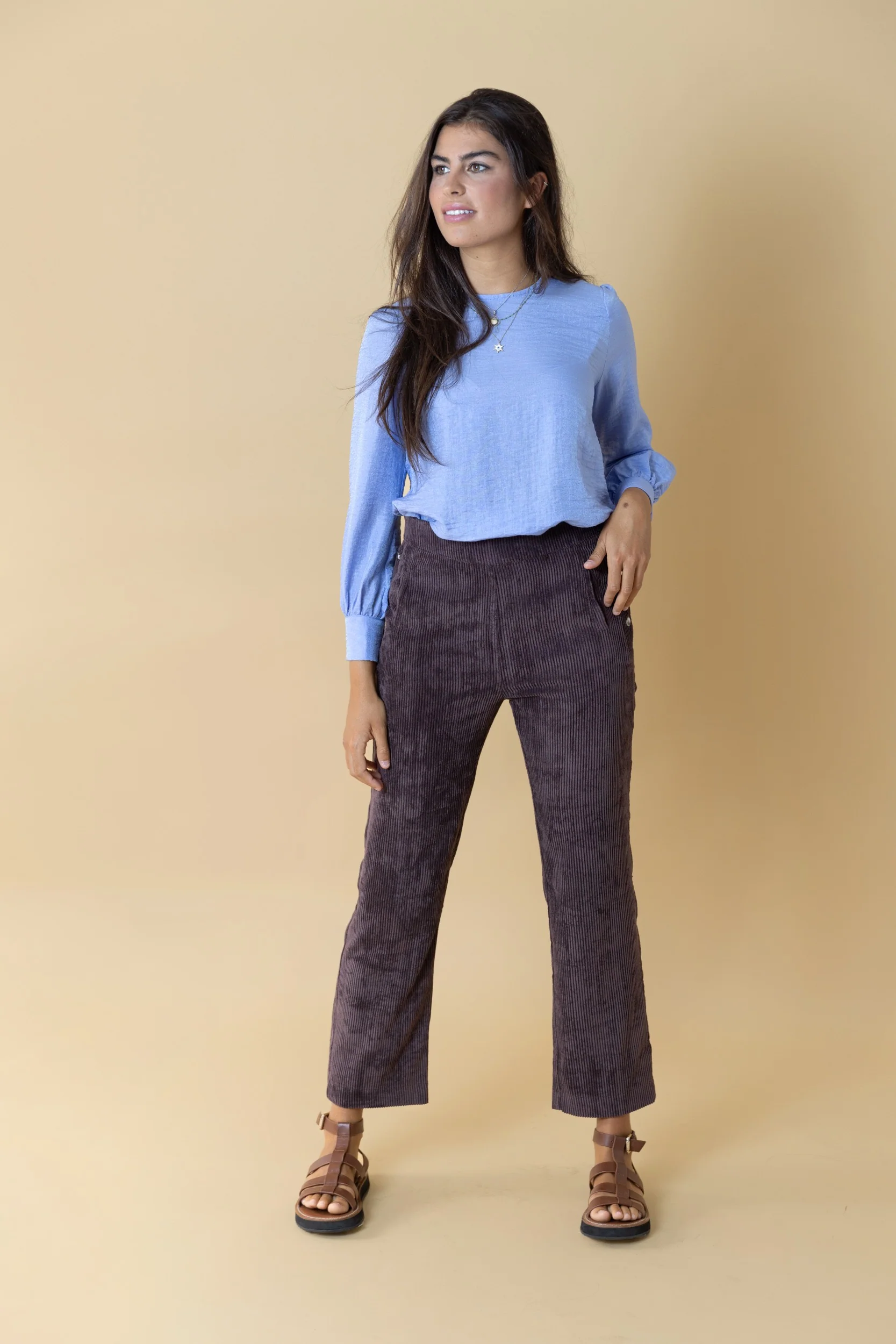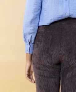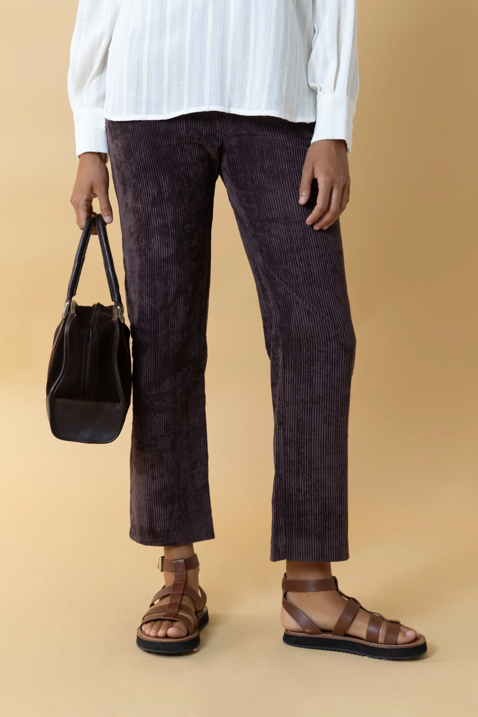 Pantalón recto realizado en pana de mezcla en color marrón chocolate.