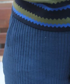 Pantalón realizado en tejido de mezcla con elastano. consiguiendo movimiento y caída en color azul oscuro.