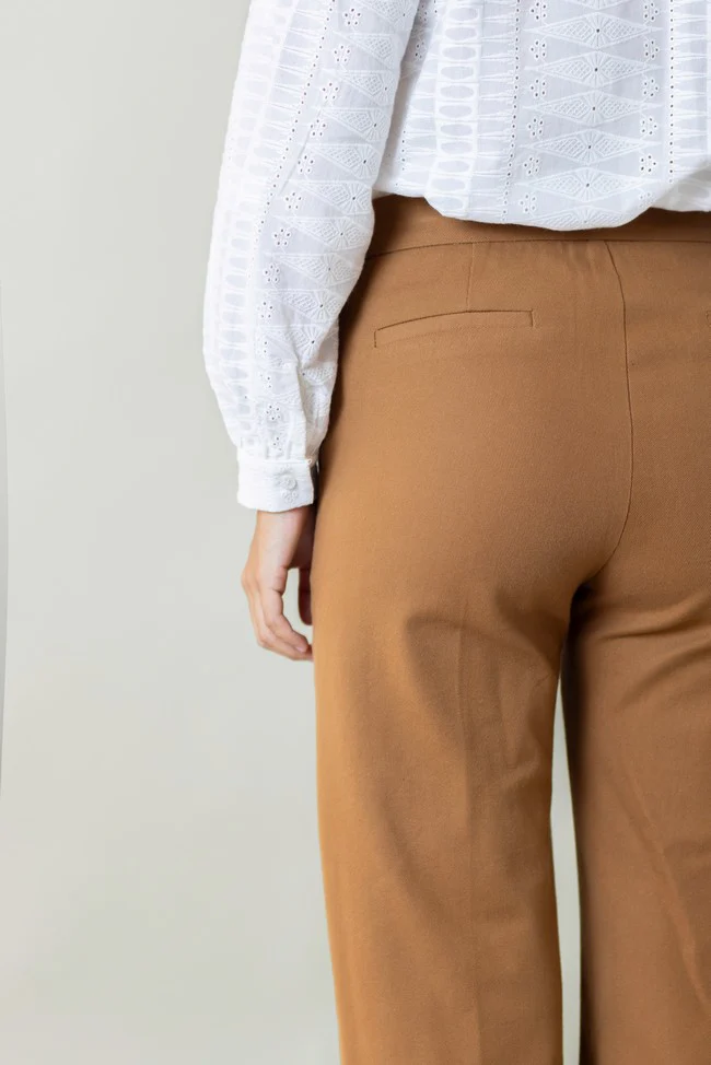 Pantalón realizado en tejido de algodón color caldera.