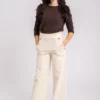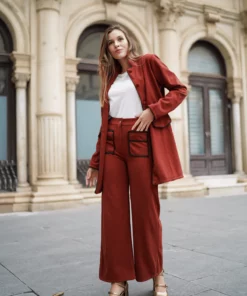 Pantalón de punto de canalé de tiro medio. Goma en la cintura, cierre con cremallera y botón. Bolsillos en los lados. Si lo combinamos con el jersey del mismo punto obtenemos un conjunto cómodo, moderno y con el estilo.