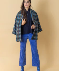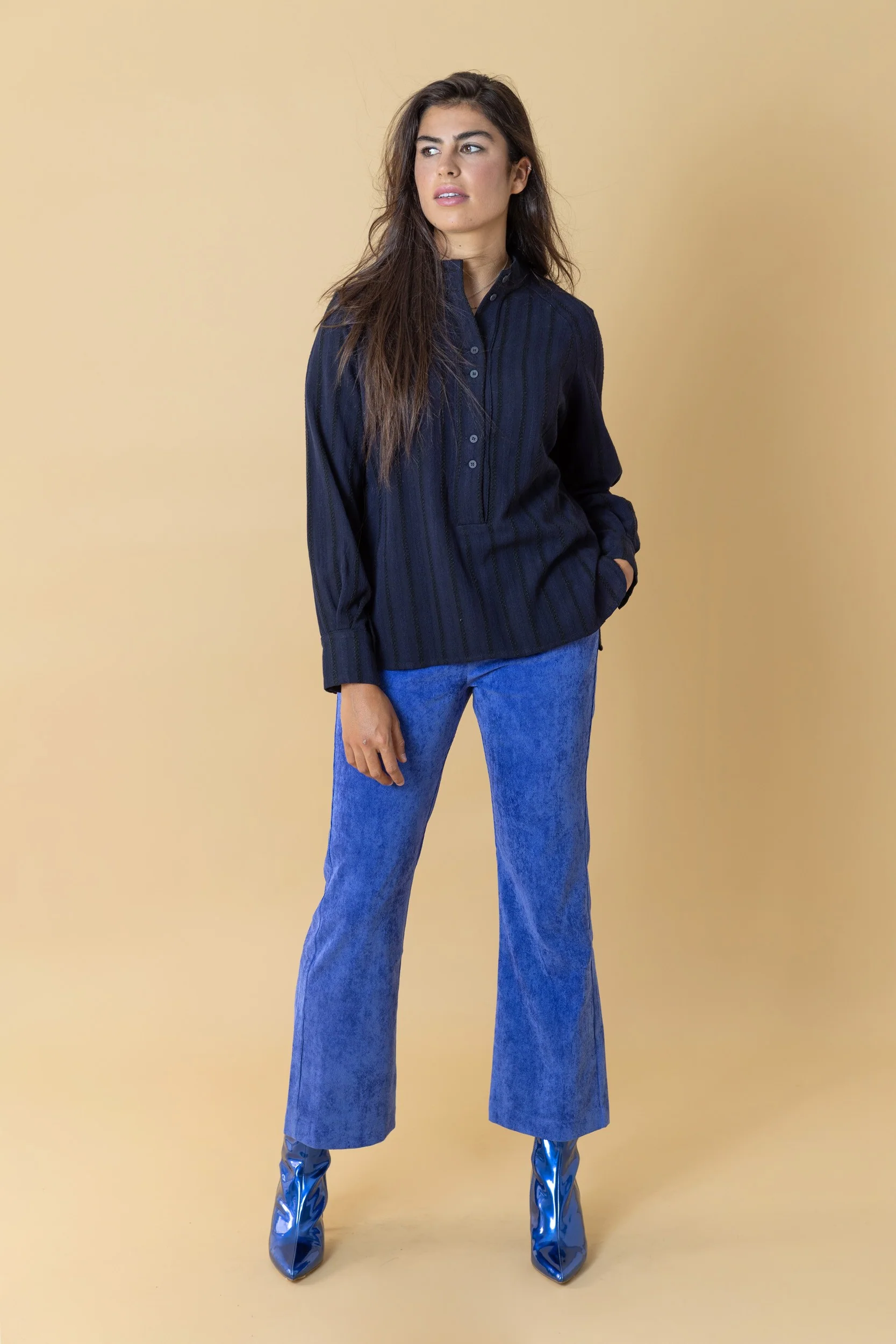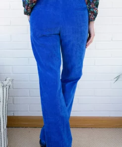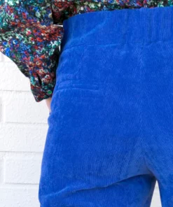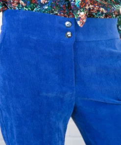 Pantalón en color azulón realizado en un tejido de pana con elastano.