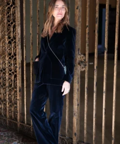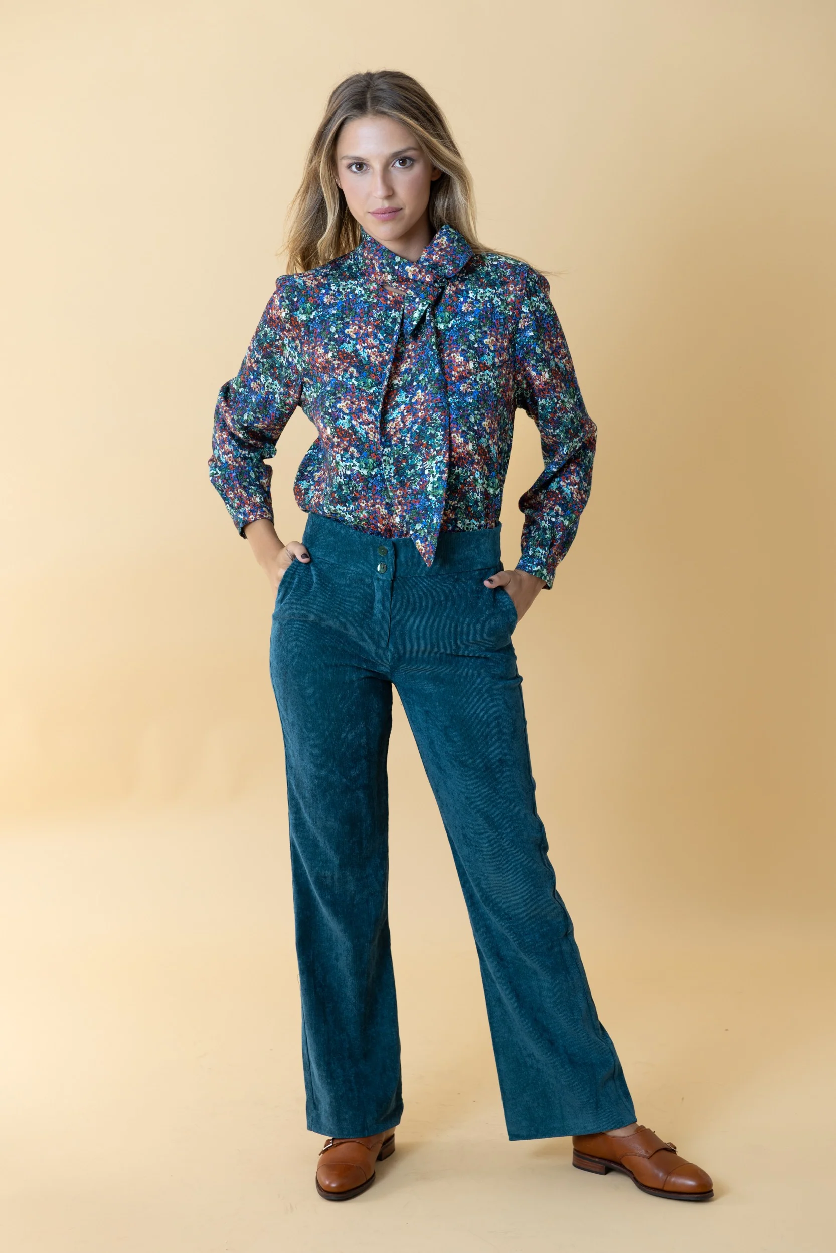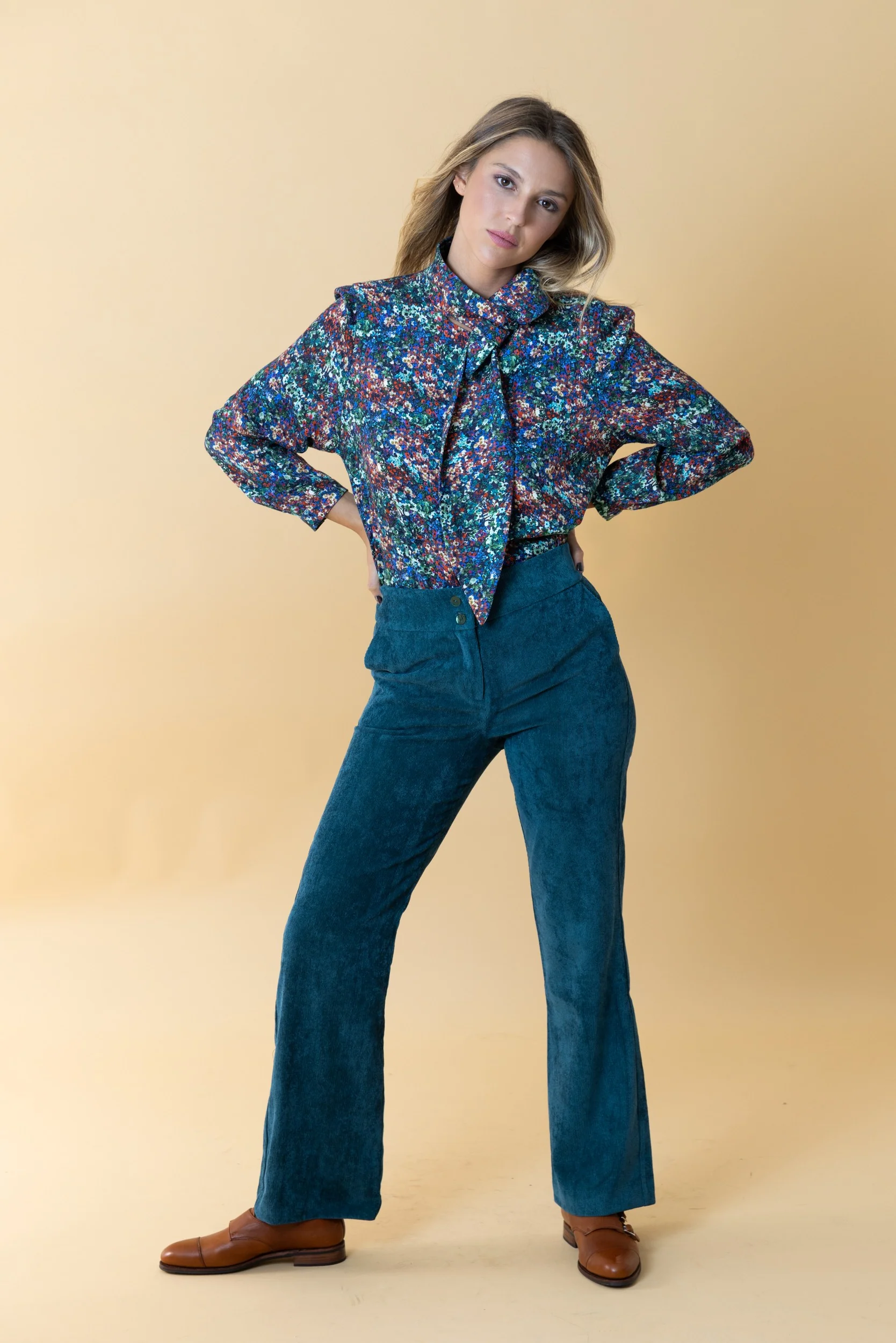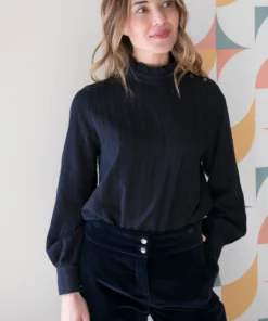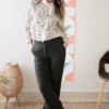 – Pantalón de corte recto y tiro medio.