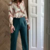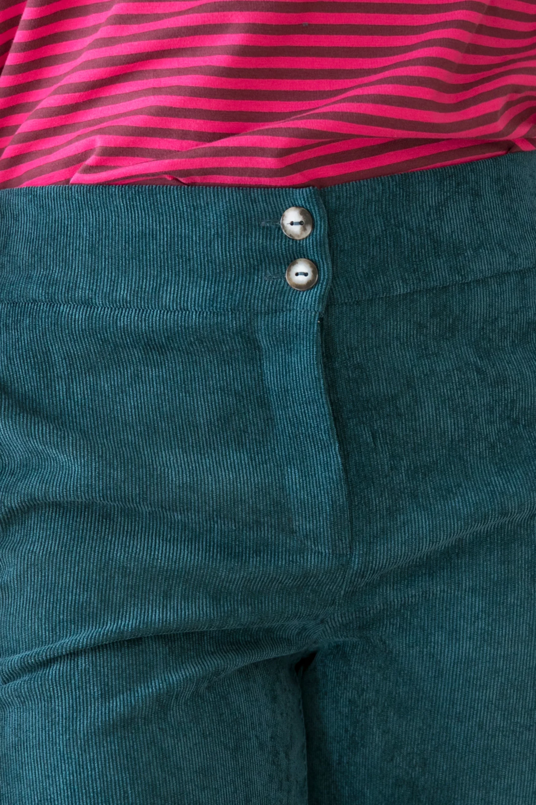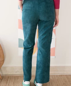 Pantalón en color verde realizado en un tejido de pana con elastano.