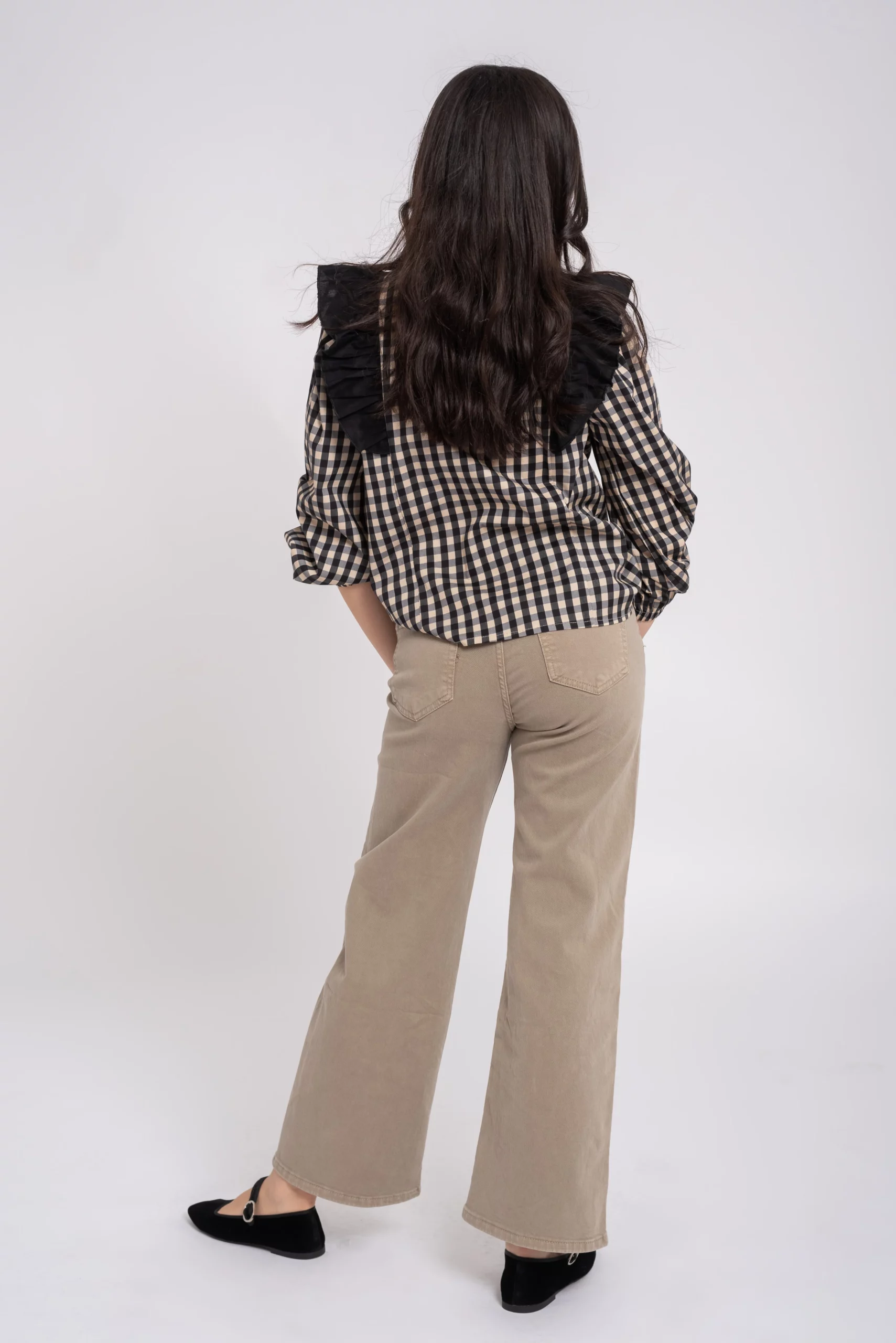 La modelo, Lucia, mide 1.62cm y lleva la talla XS de este pantalón.
