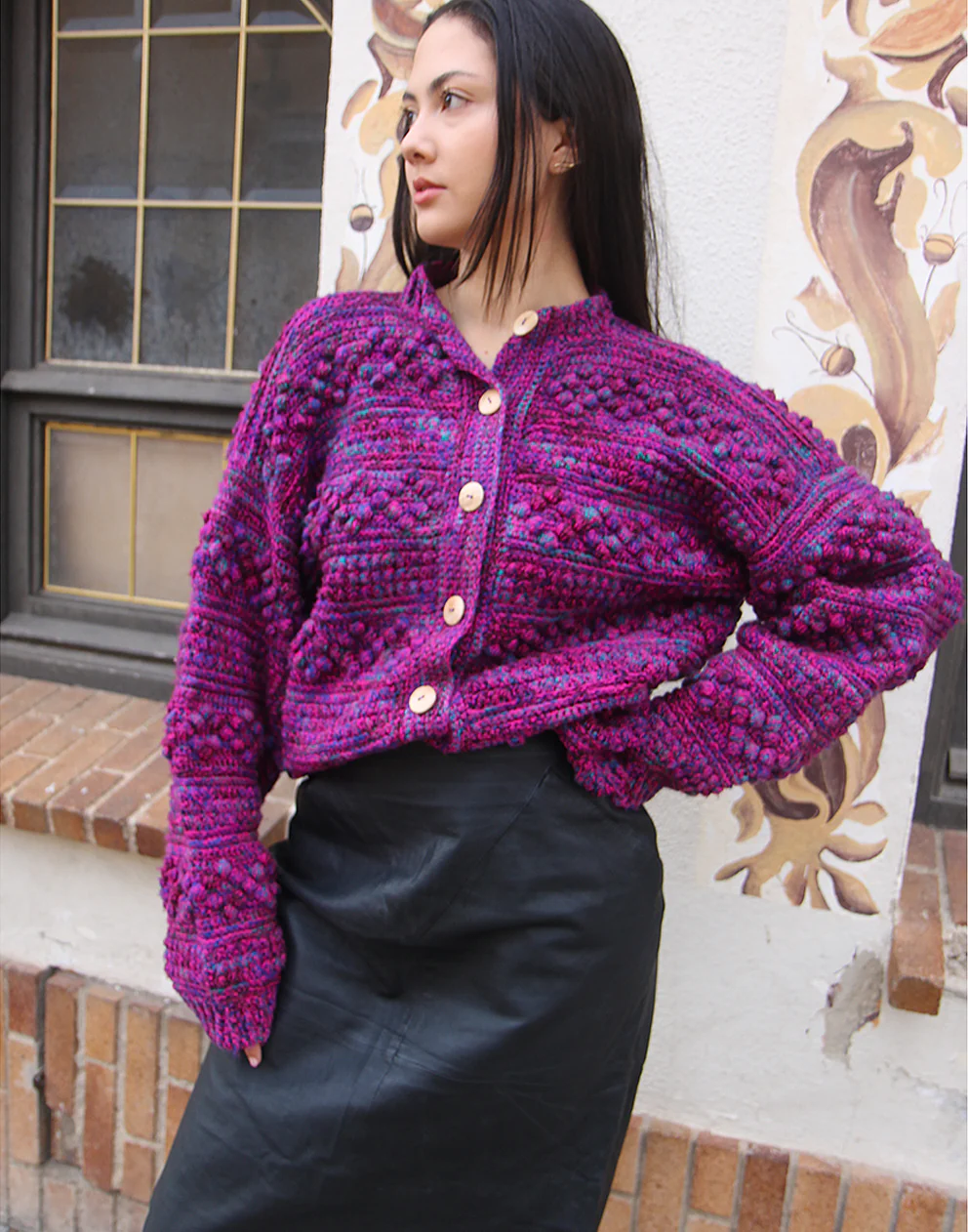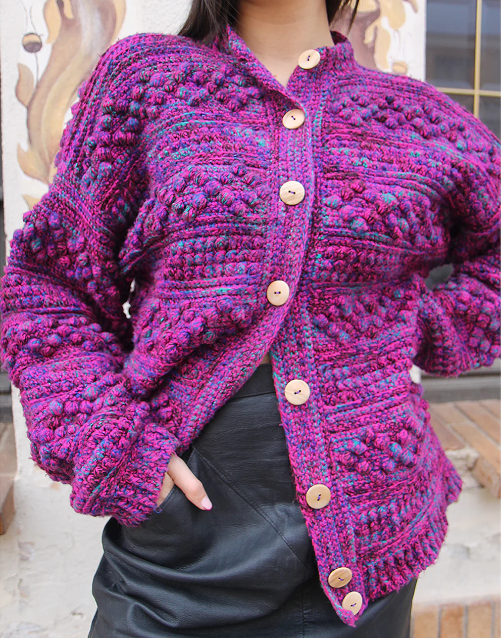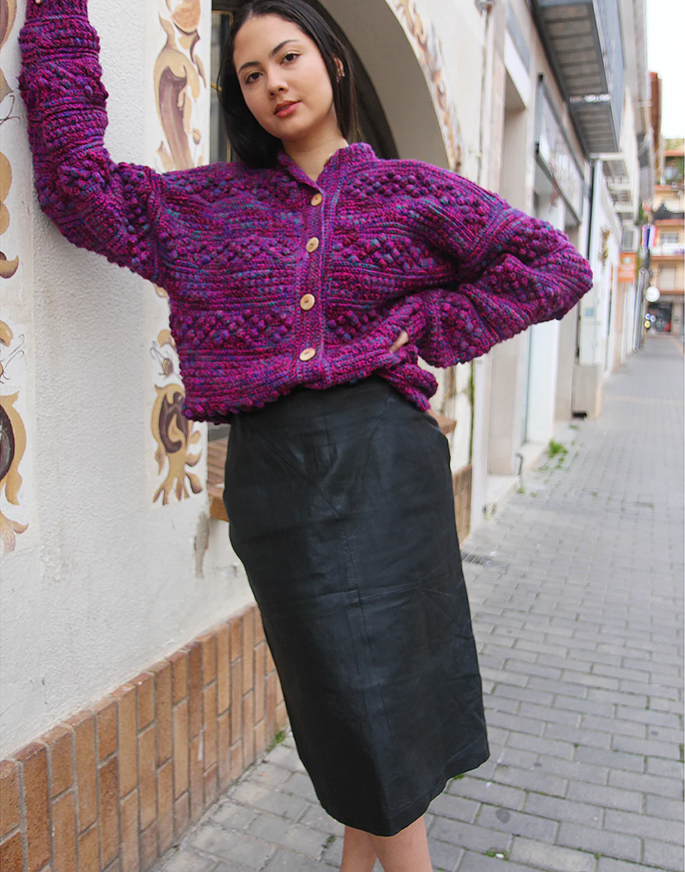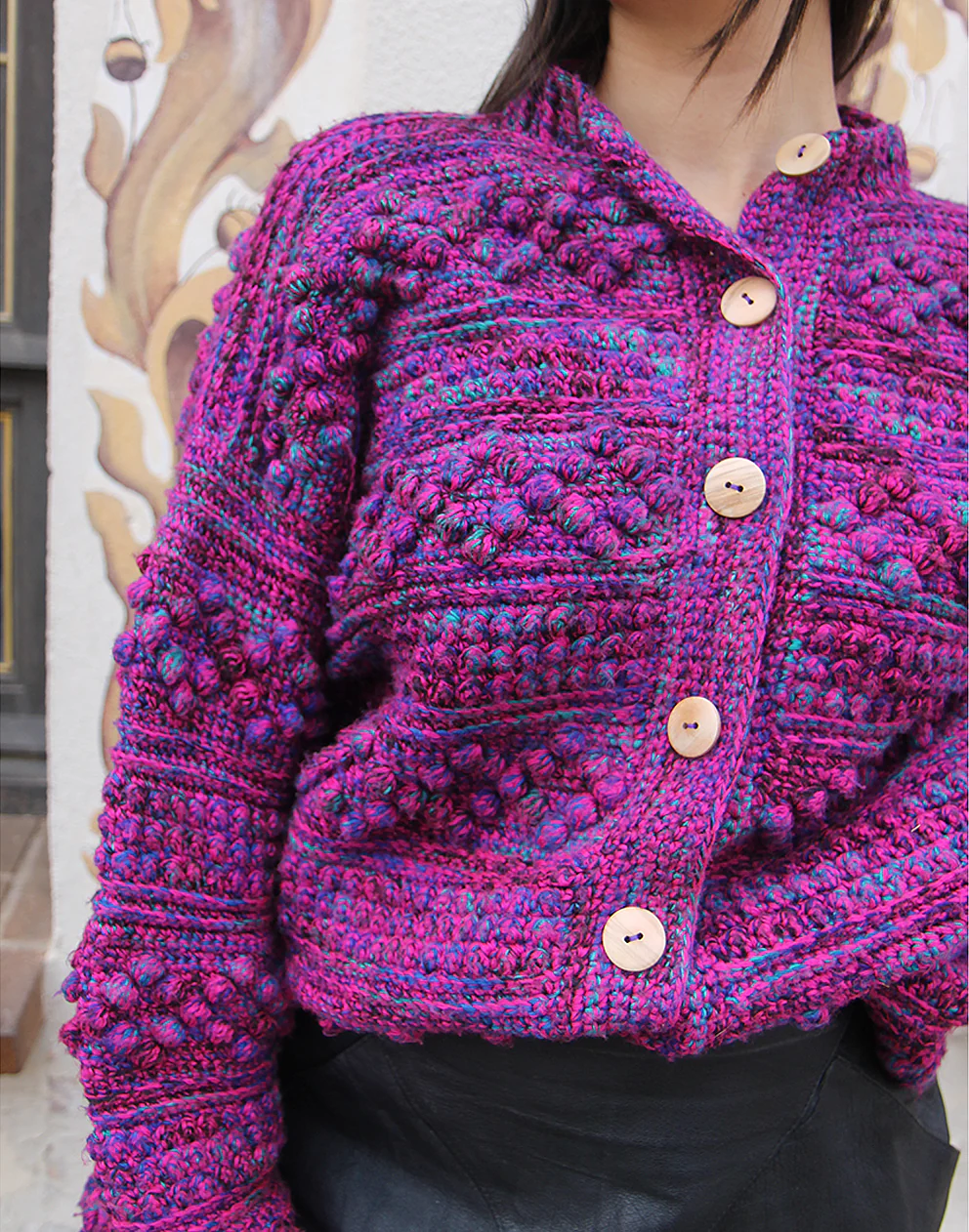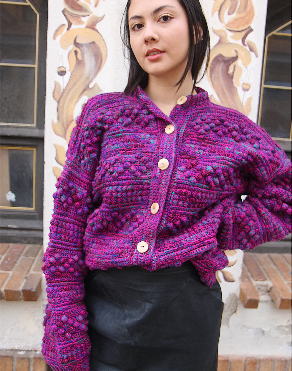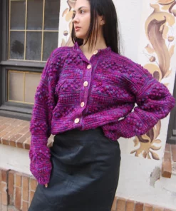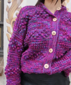 Measurements: 40″/ 102cm bust – 28″/ 71cm sleeve length – 23″ / 58cm top length.