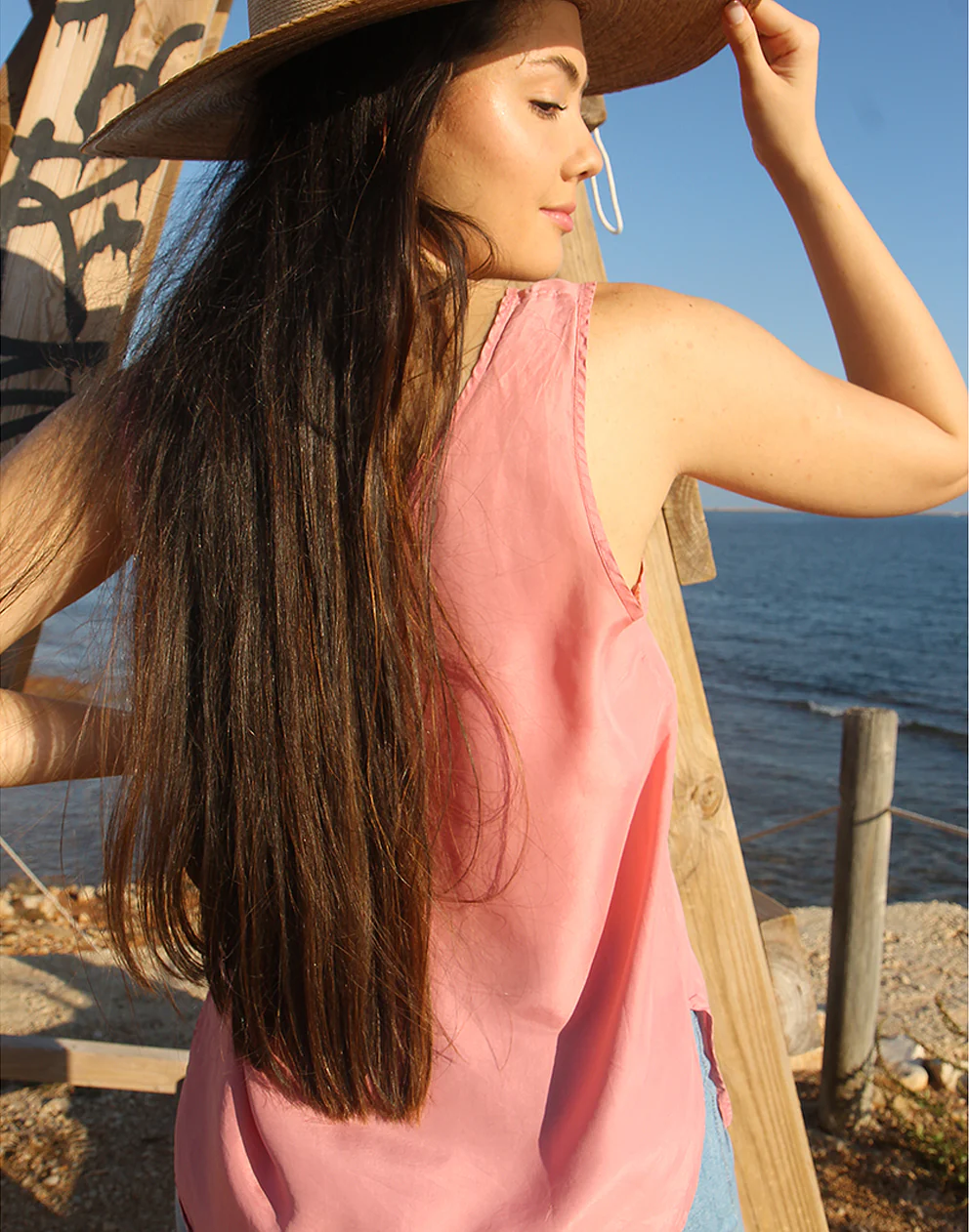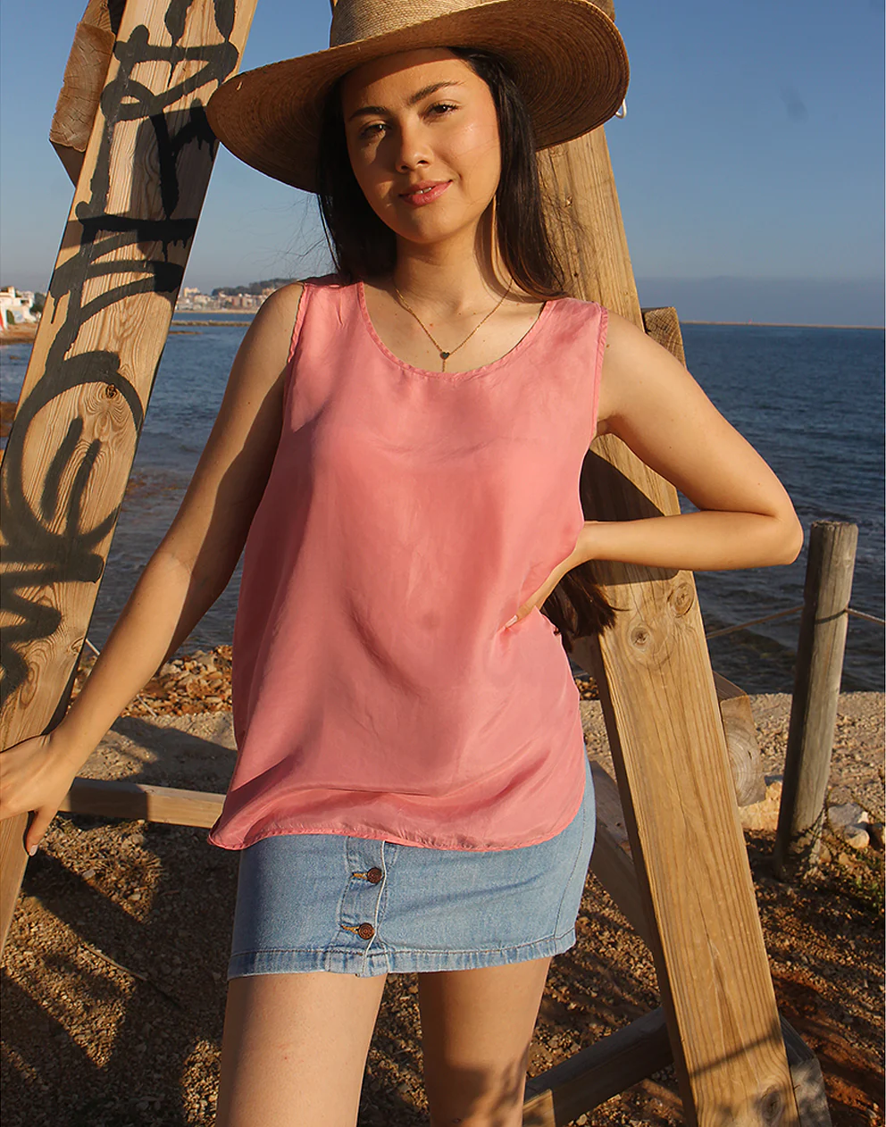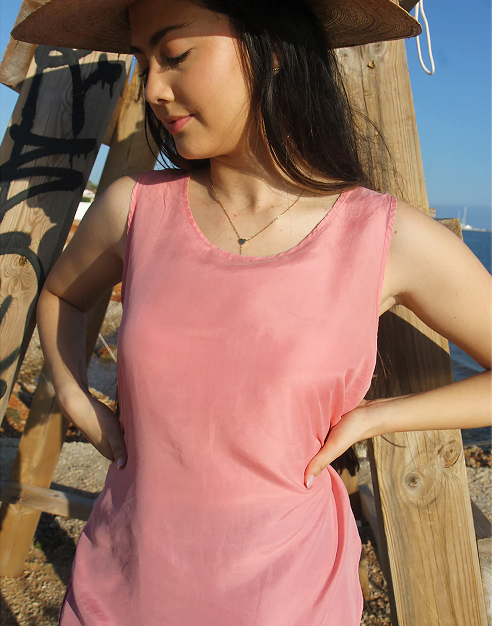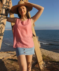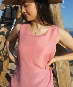 Vest top in pink pure silk.
