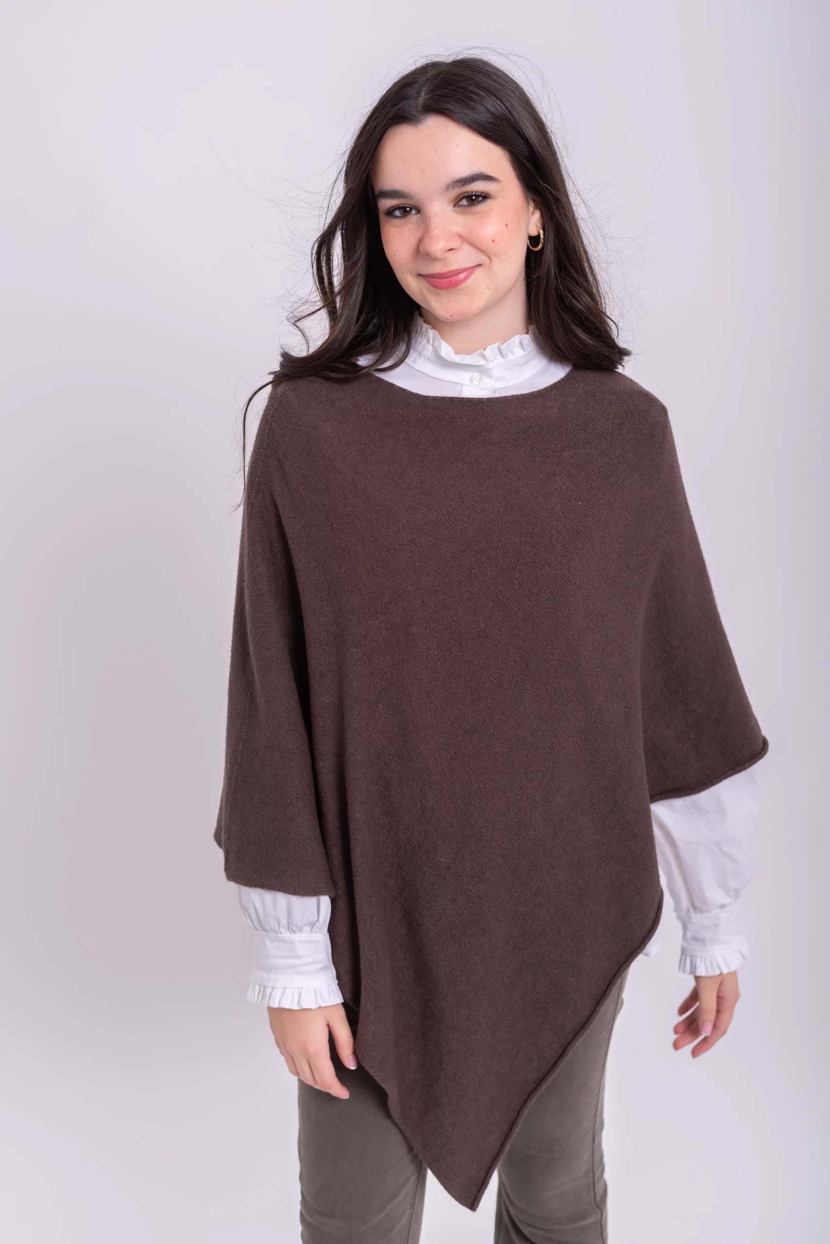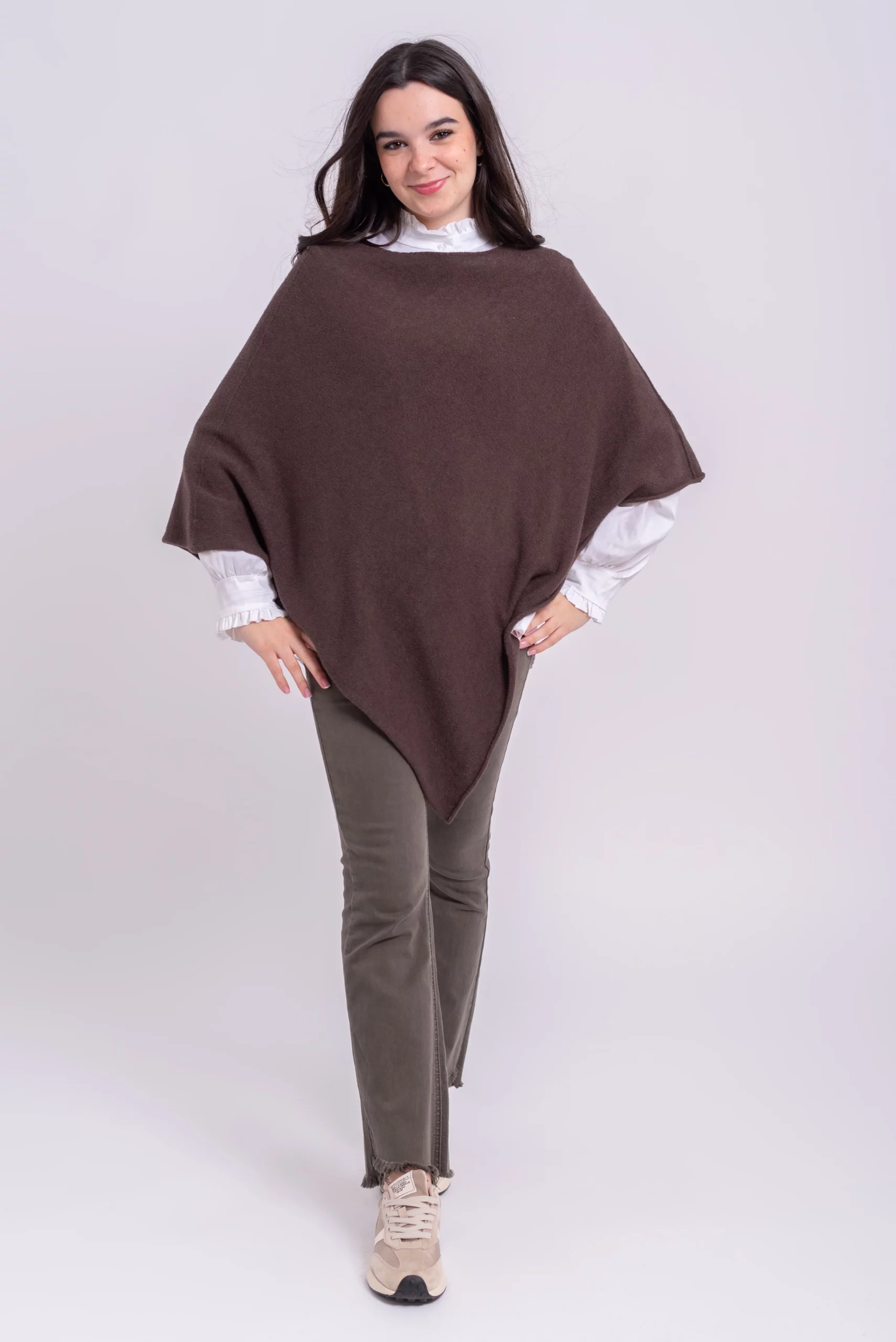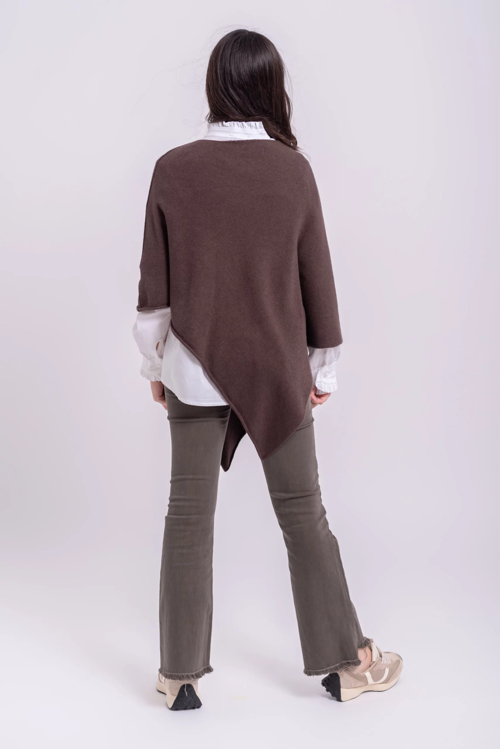 Poncho de punto con corte en pico. Comodo, favorecedor y super tendencia.