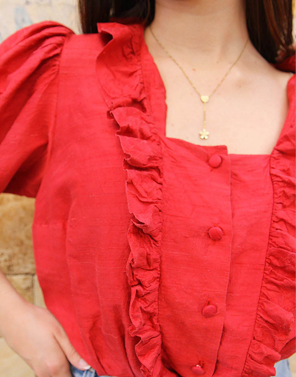 Measurements- 42″(107cm) bust – 20″(51cm) sleeve length – 23″(59cm) top length.