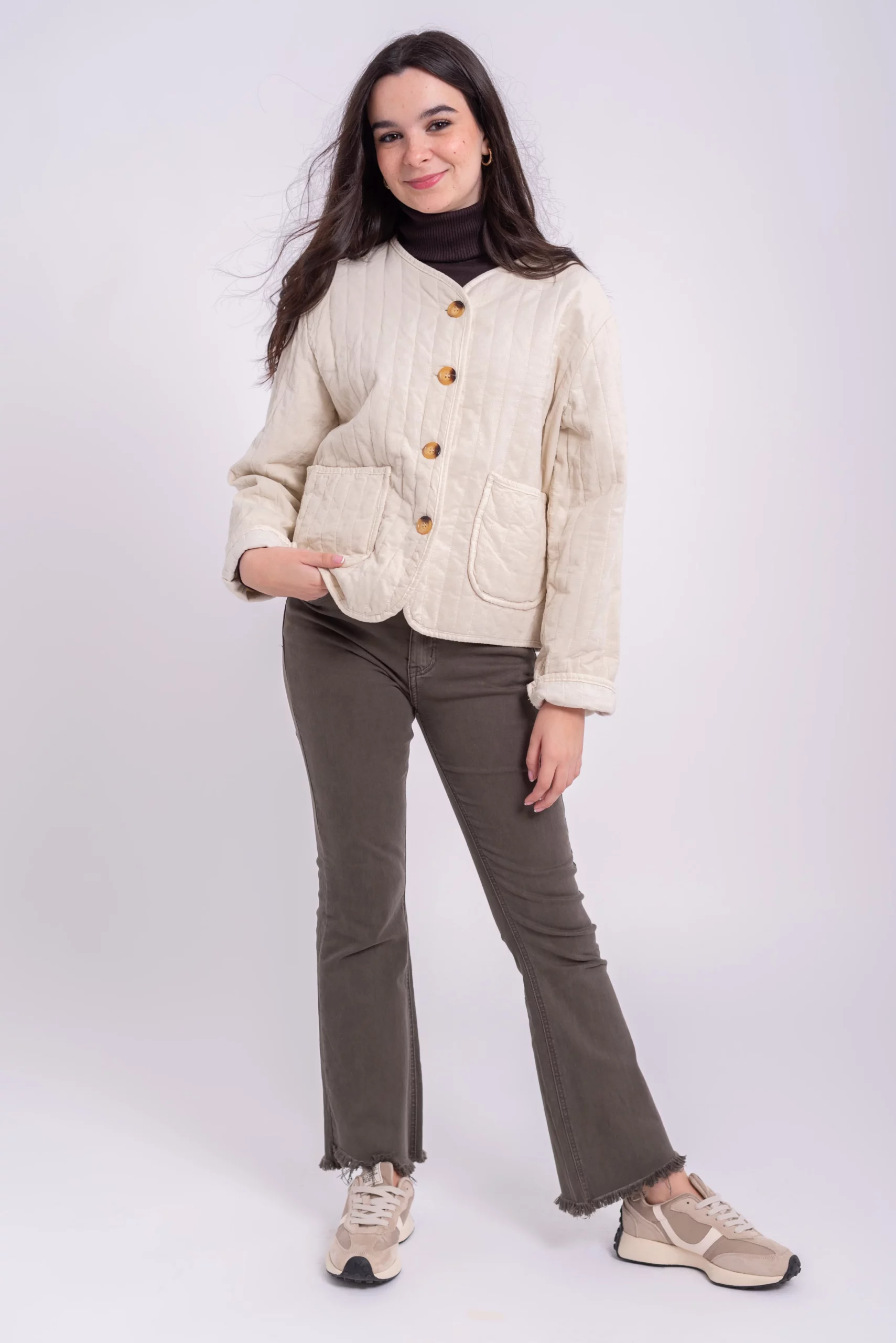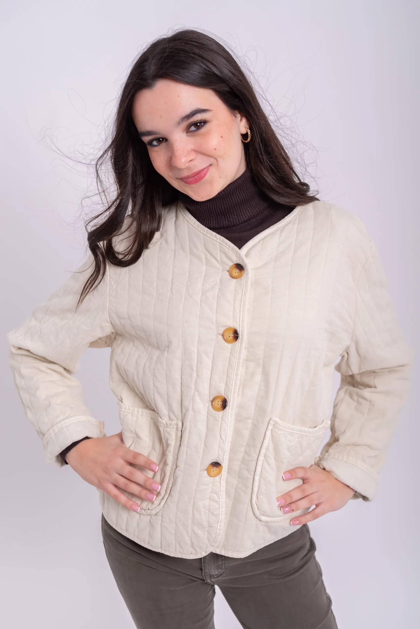 Chaqueta de micropana. Bolsillos en plastron. Abotonada sobre el pecho. Cuello redondo. Manga Larga. Ideal!!