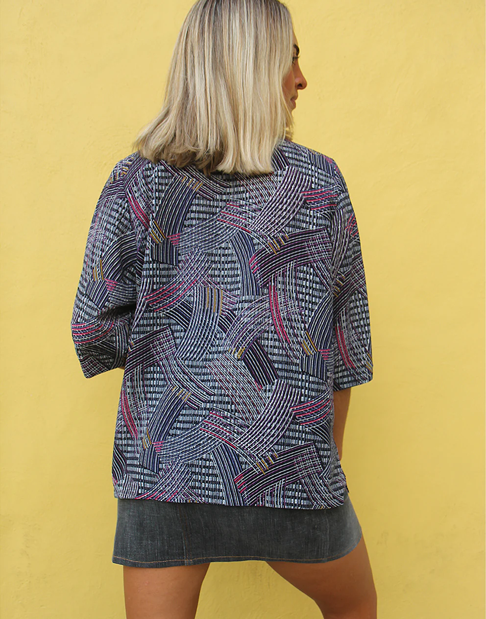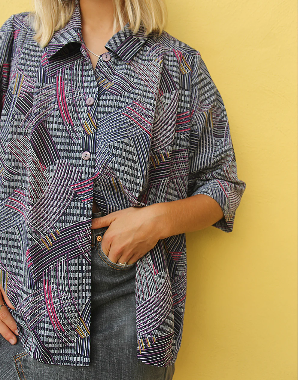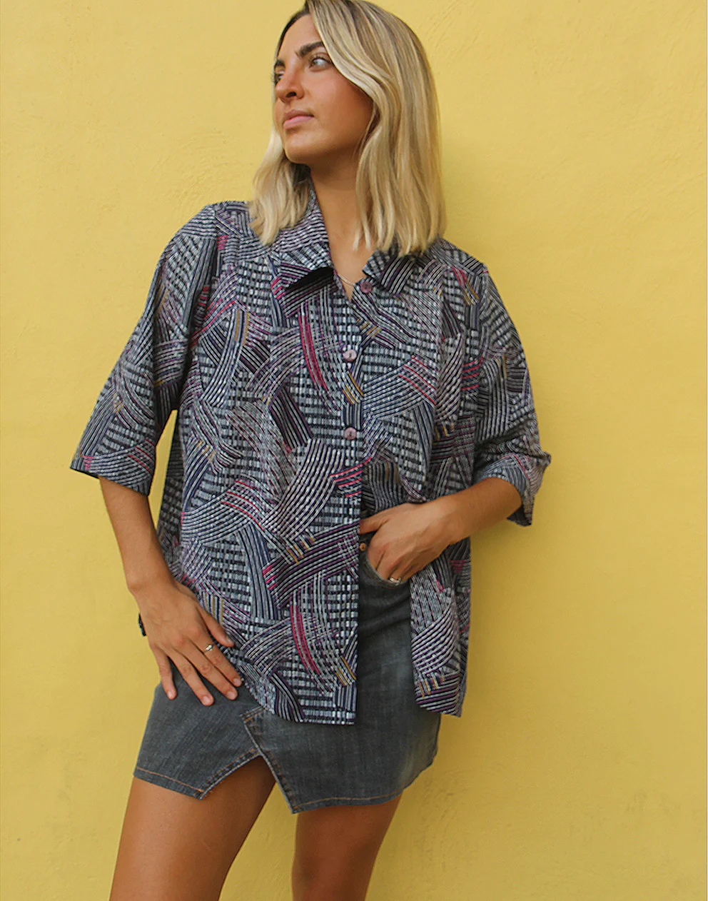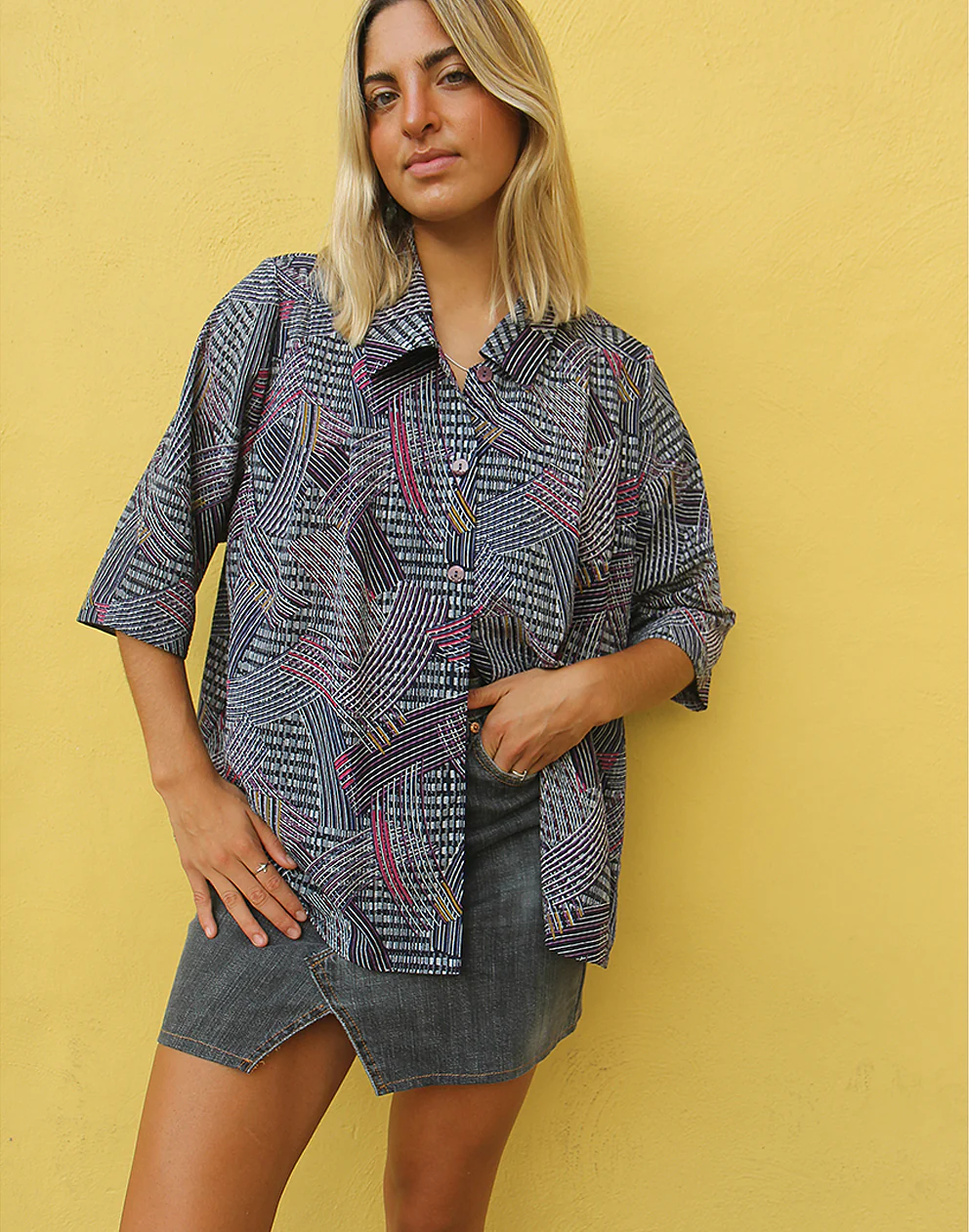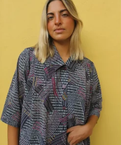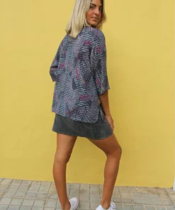 Printed shirt in black and grey abstract print.