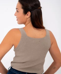 Top de tirante ancho, escote en pico. Canalé. Un fondo de armario. Perfecto para combinar con ponchos, blazer o sobrecamisas.