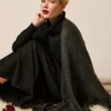 Top lurex en color negro. Cuello alto, sin mangas y diseño recto con ligeras aberturas laterales.
