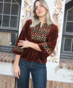Measurements: 36″/ 91cm bust – 20″ / 51cm sleeve length – 23″ / 58cm top length.