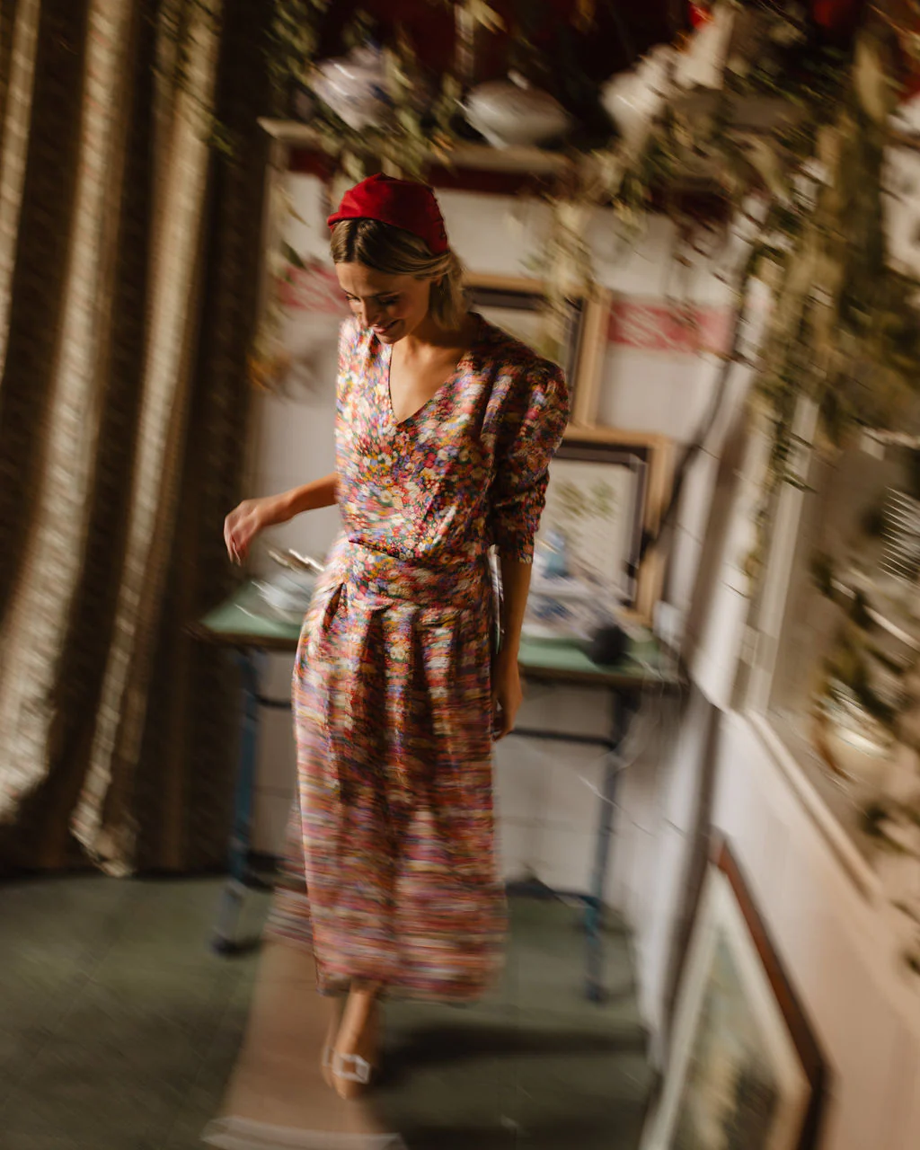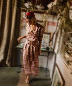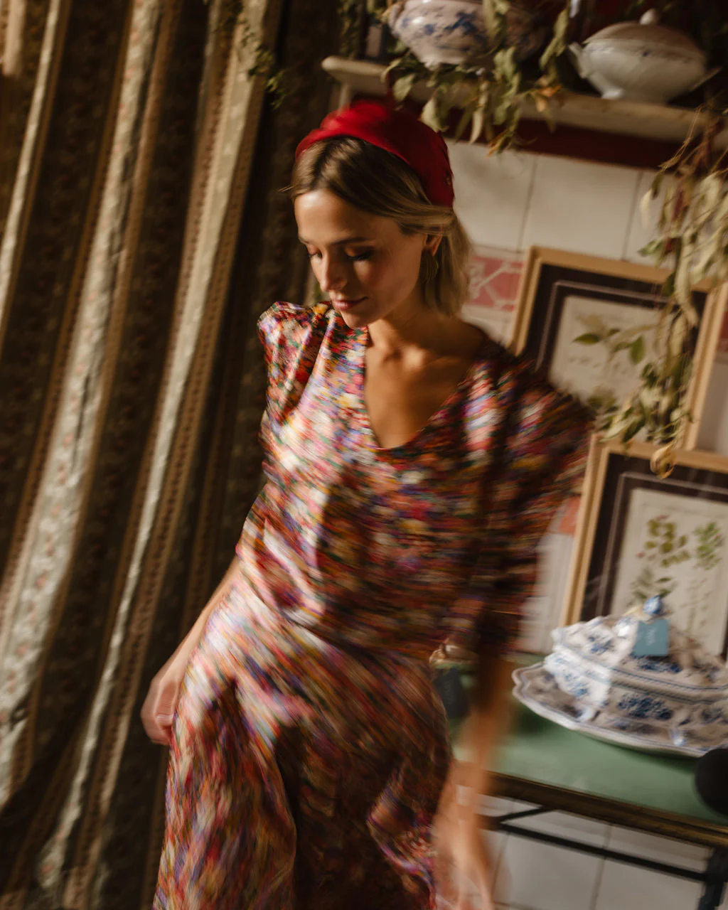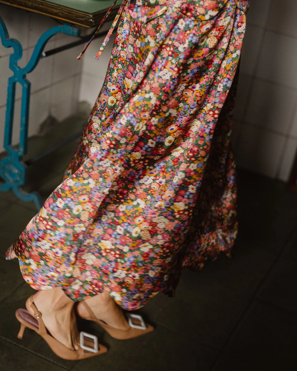 La joya de la corona es este vestidazo con ondas en el bajo y en el fajín, de escote en pico y largo midi.