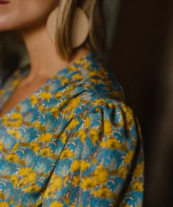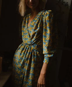 Vestido cruzado de seda de Liberty con frunces en el pecho.
